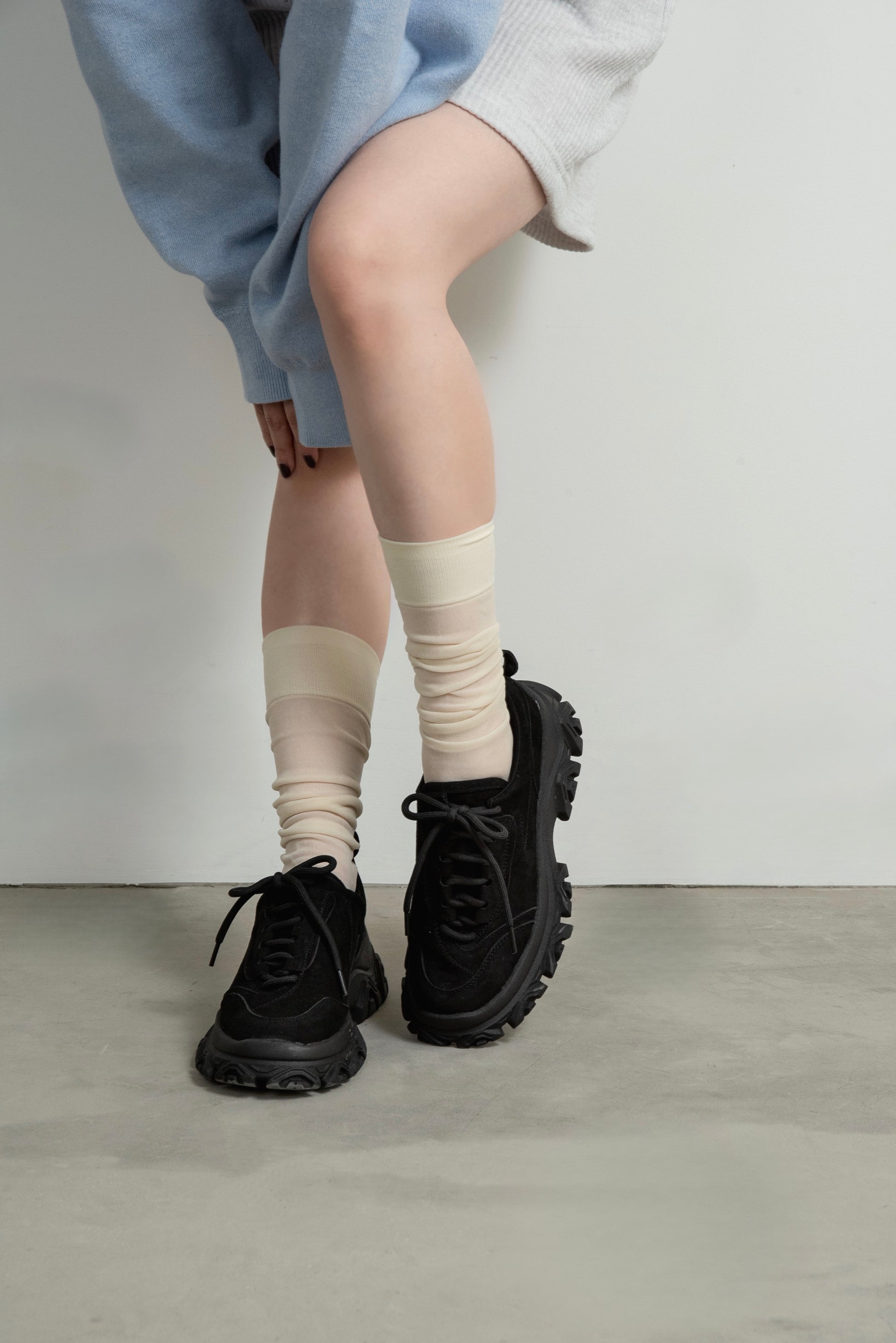 ・切り替えやステッチデザインが可愛いボリューミーな厚底スニーカー