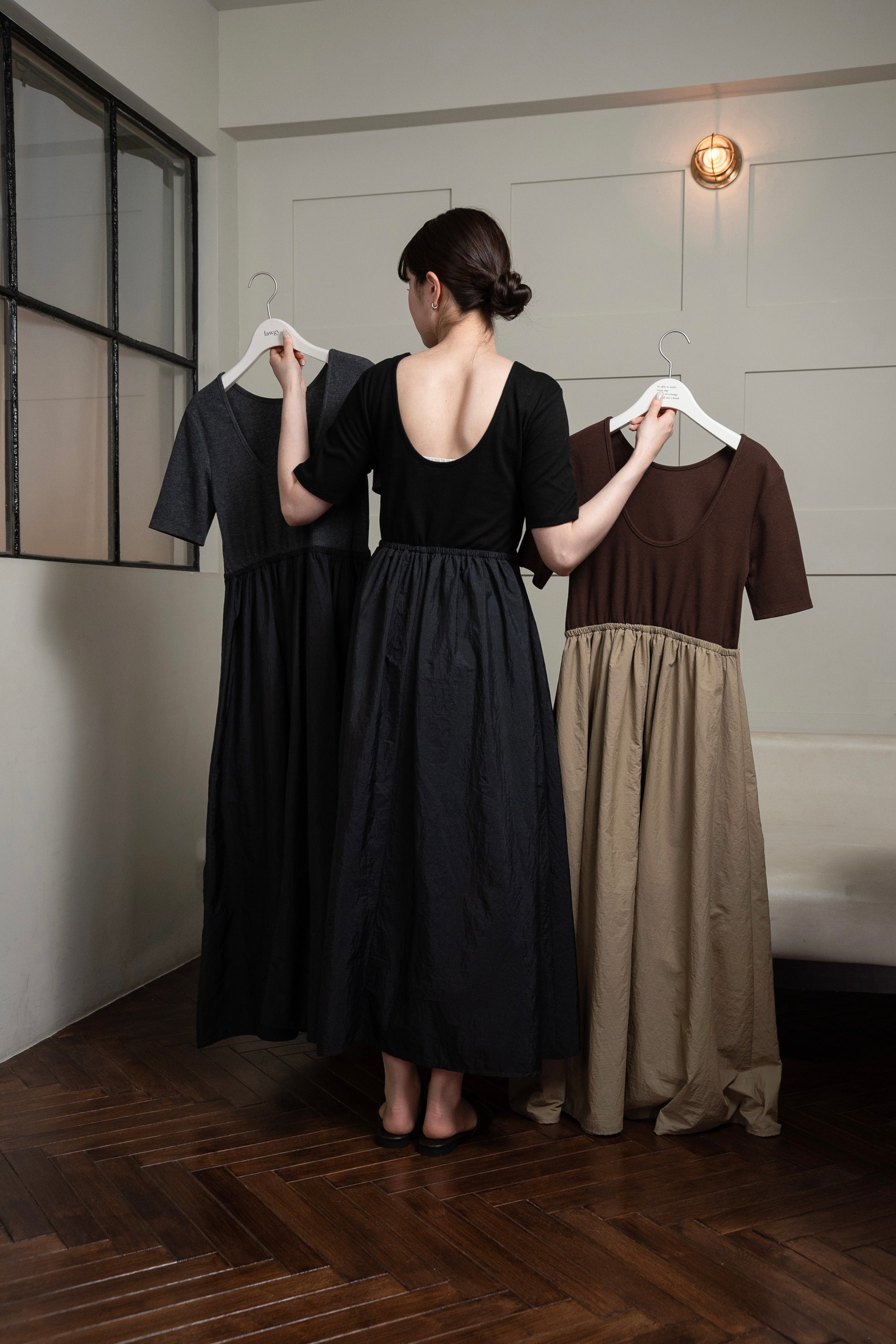 商品名:バックオープンディファレントマテリアルワンピ