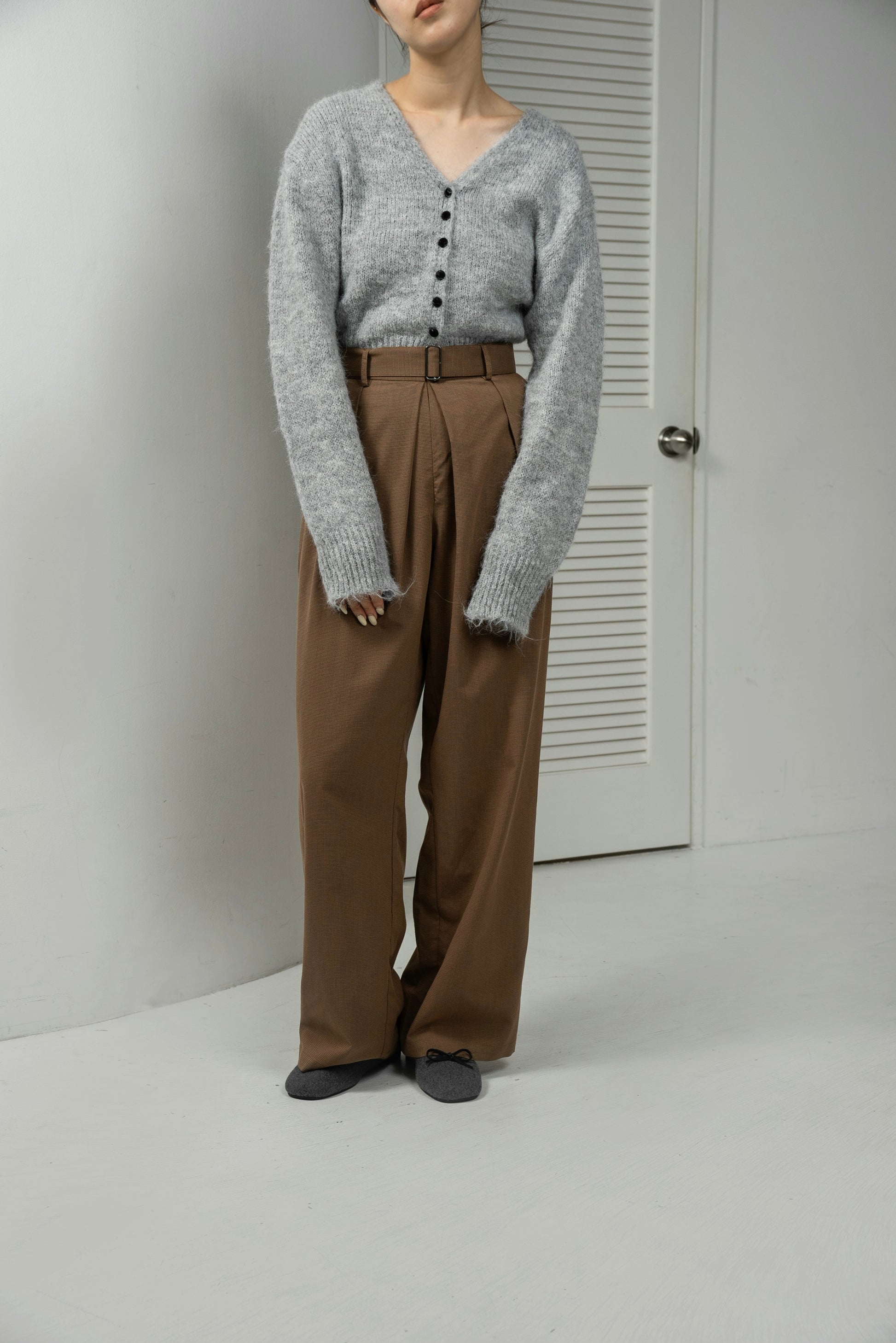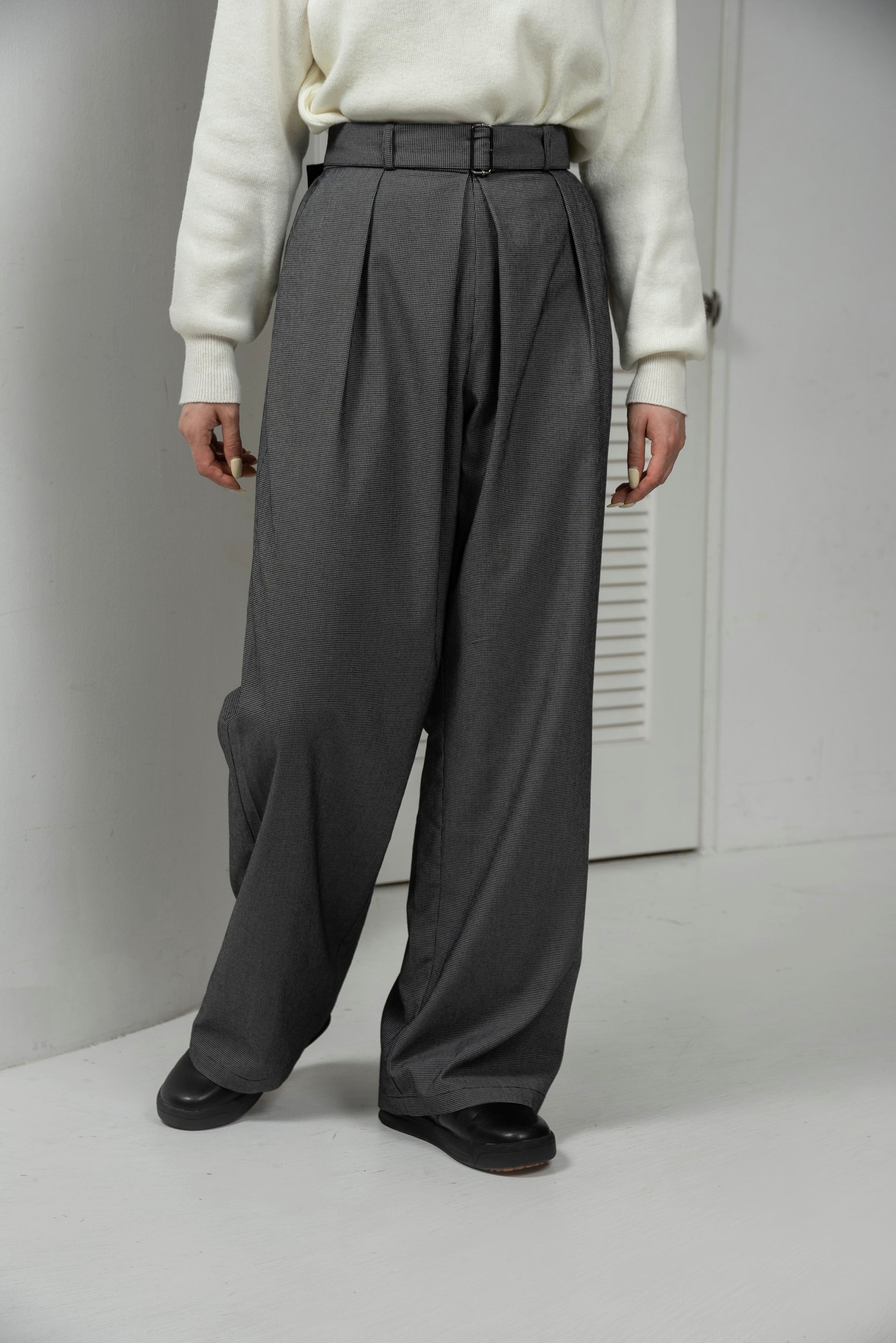 belt set center tuck check pants