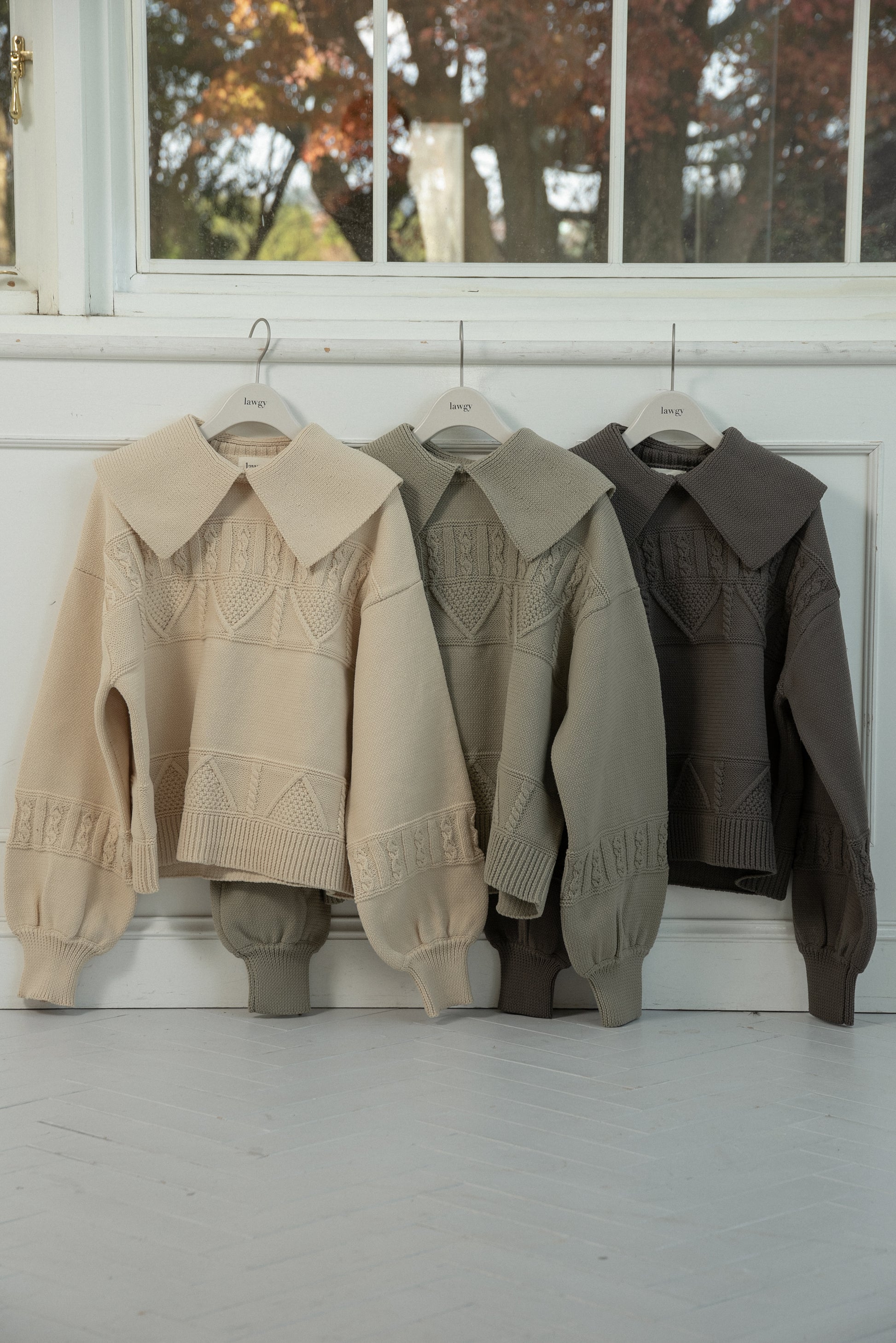 商品名:ビッグカラーパターンボリュームスリーブニット