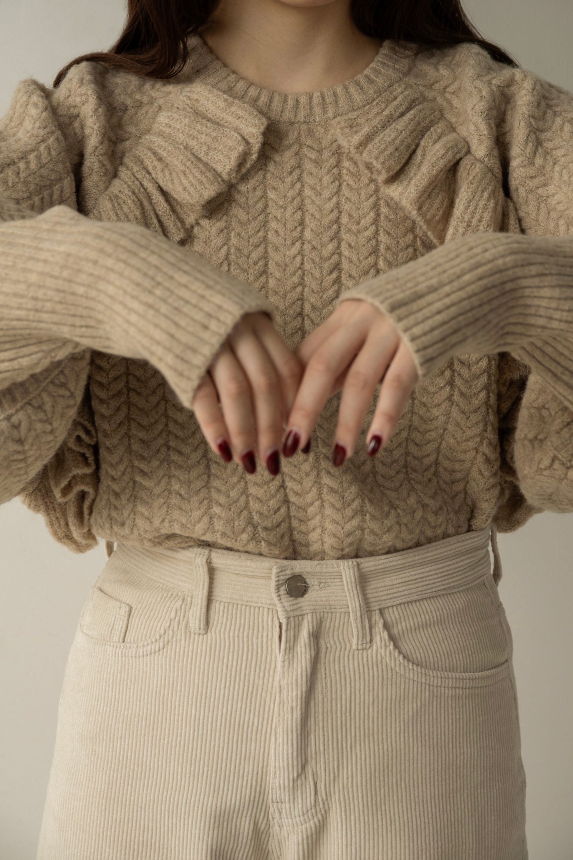・細かめなケーブル編みで立体感があり、主役級のアイテム