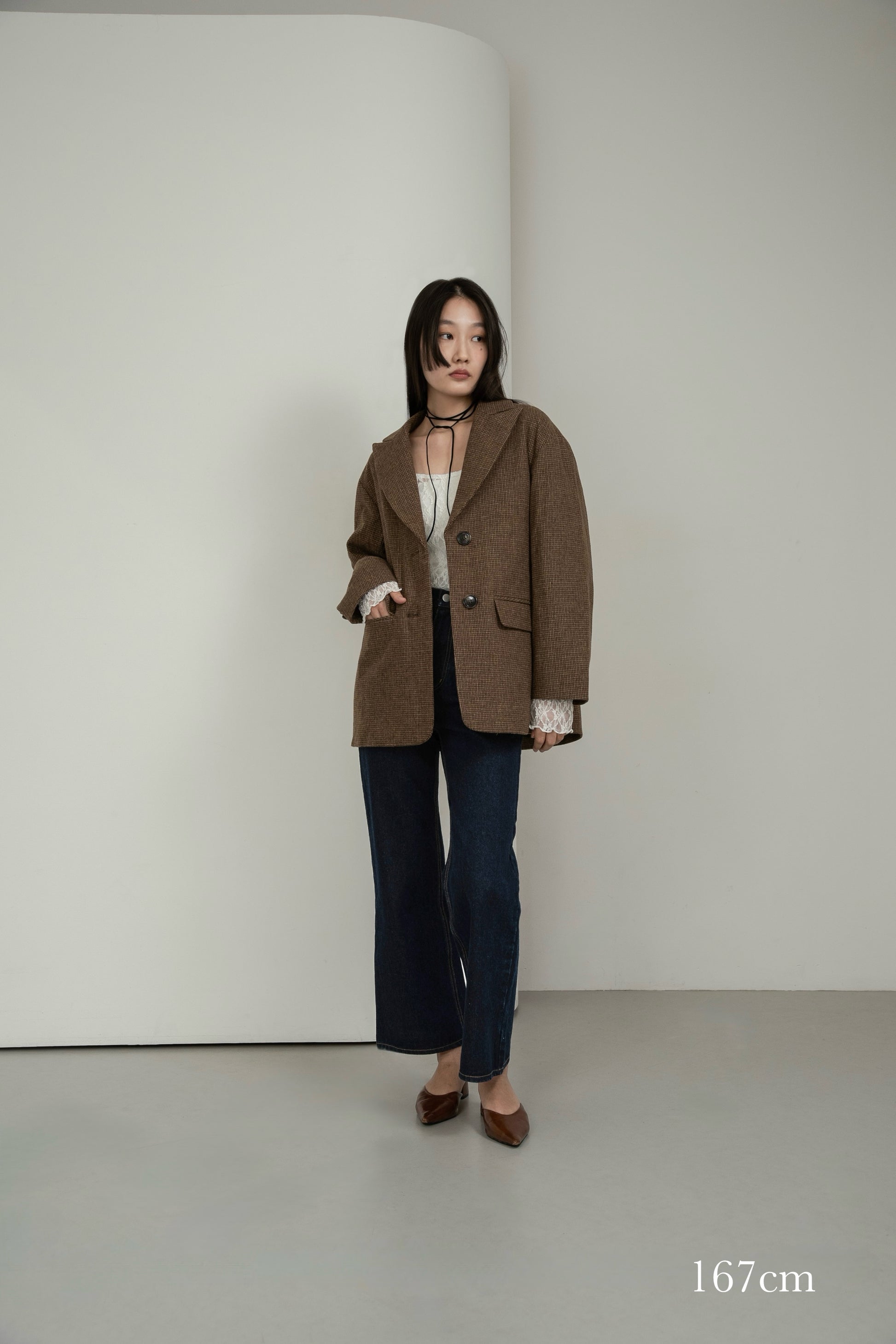 ・程よいオーバーサイズと太めのアームホール仕様でニット合わせもおすすめな一着