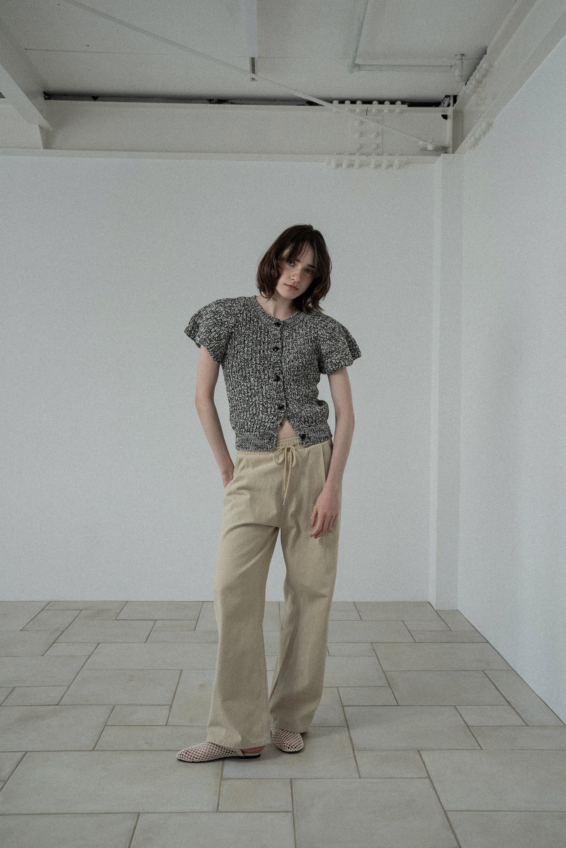 ・腰まわりにタックを施し、ゆとりを持たせたシルエットが抜け感のあるスタイリングを演出