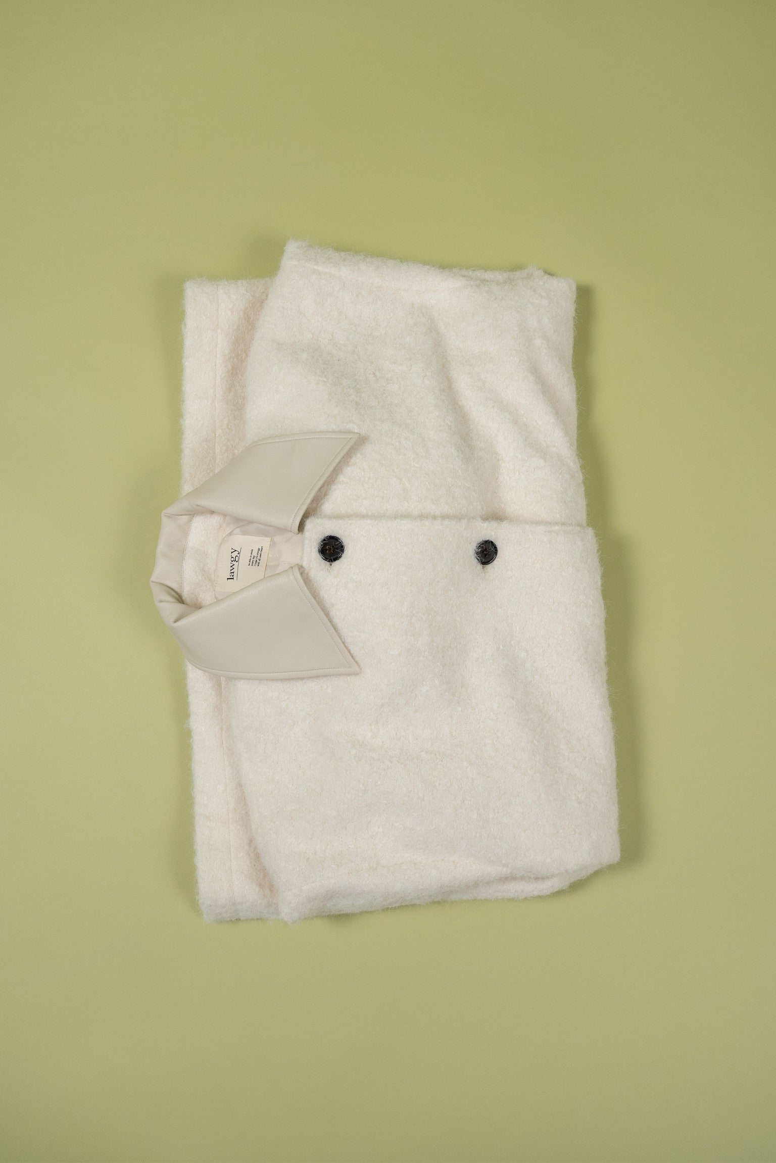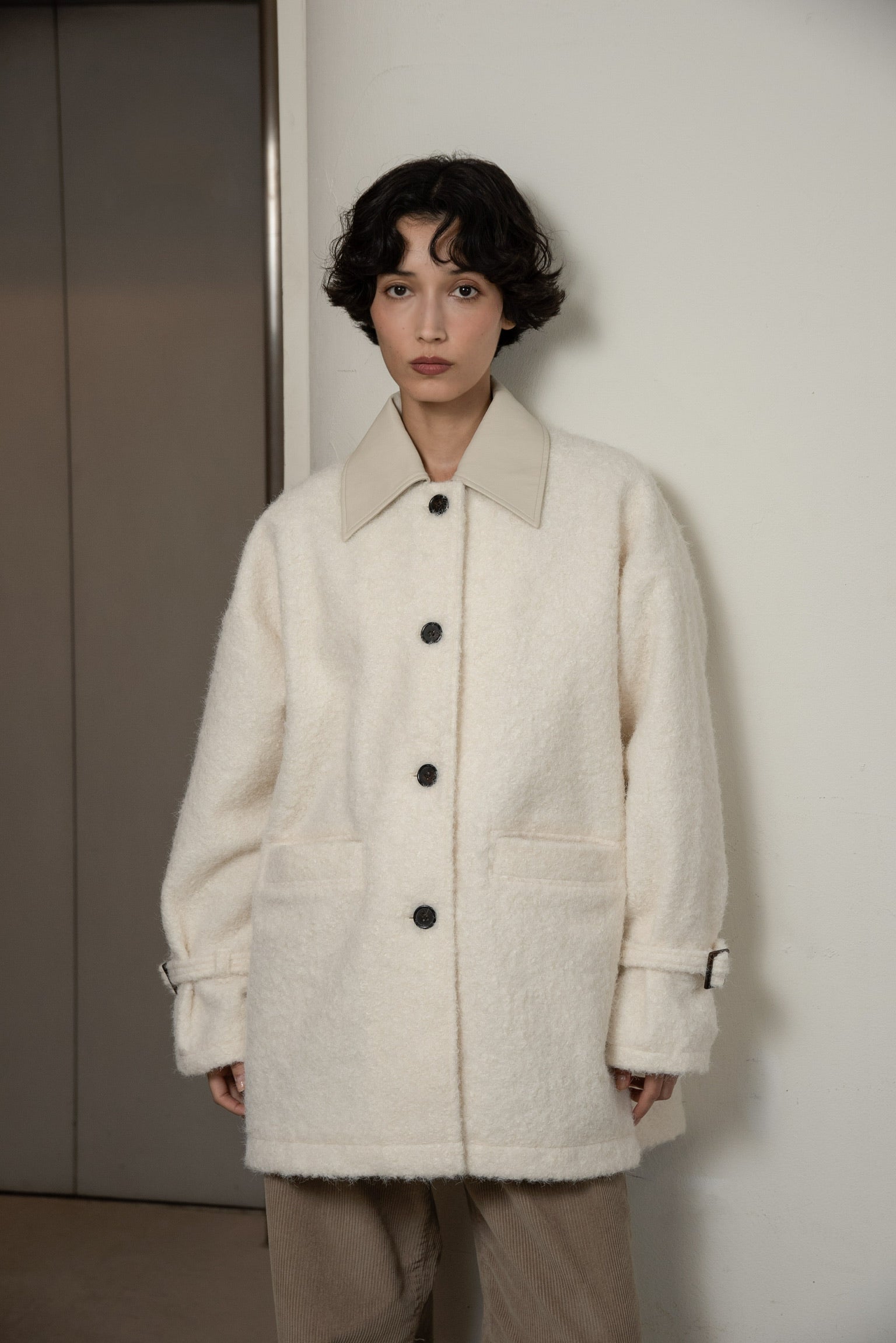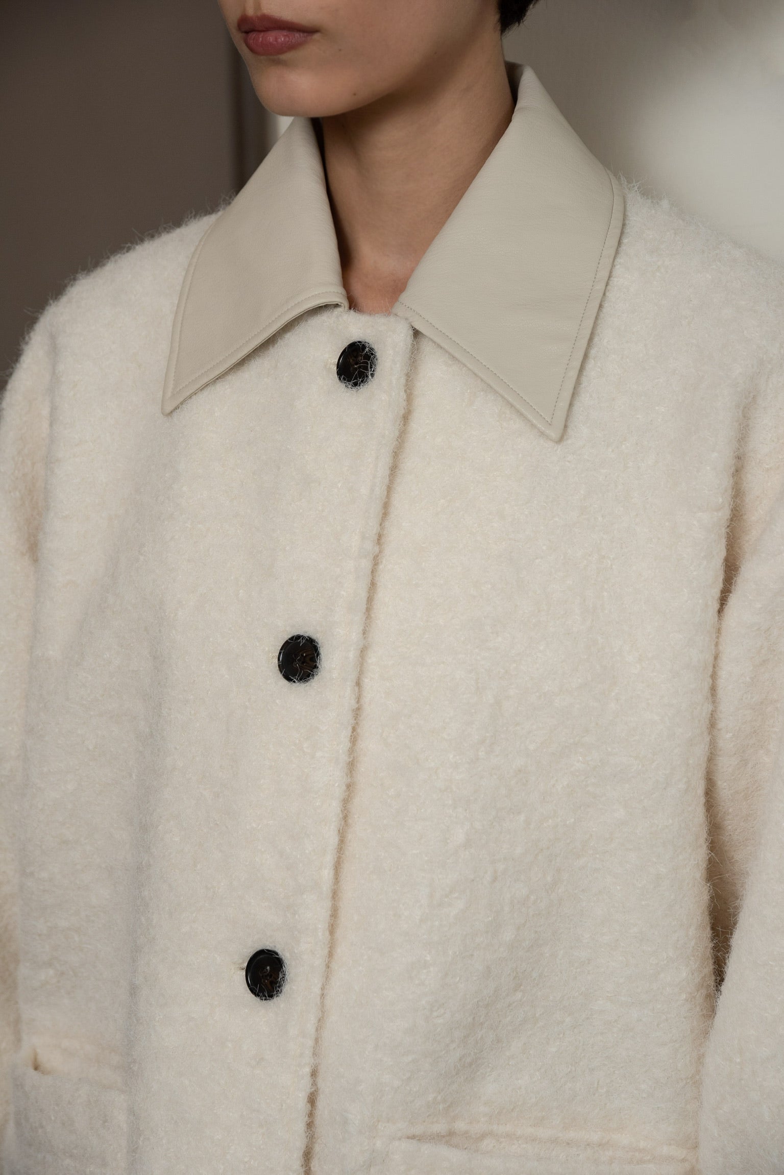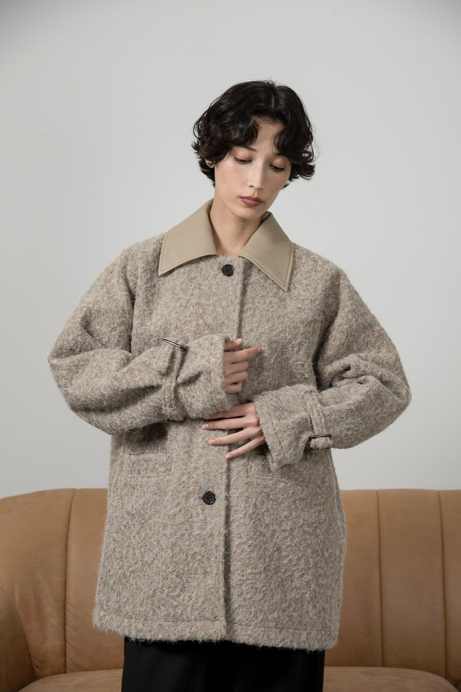 ・ふわふわした素材に異素材の襟が映える、デザイン性◎なコート