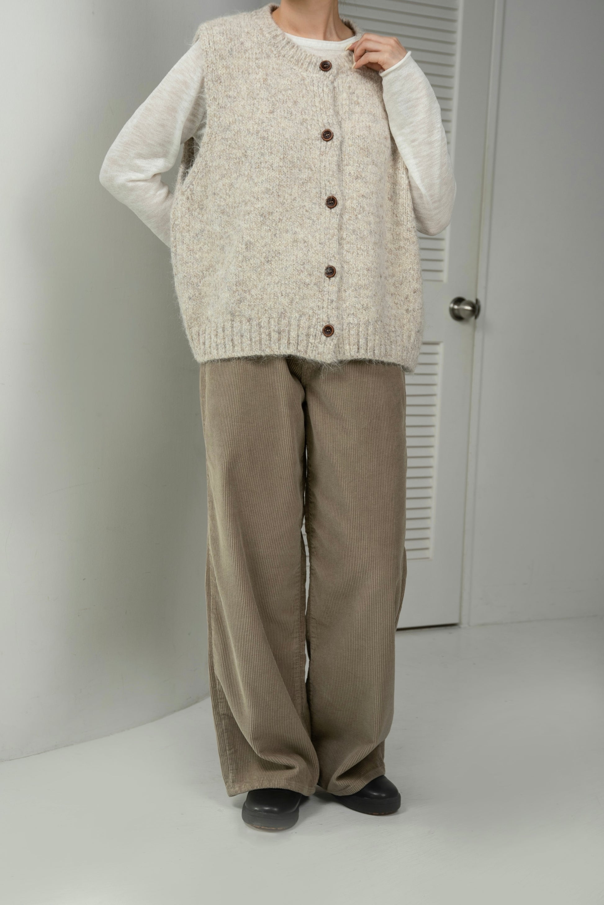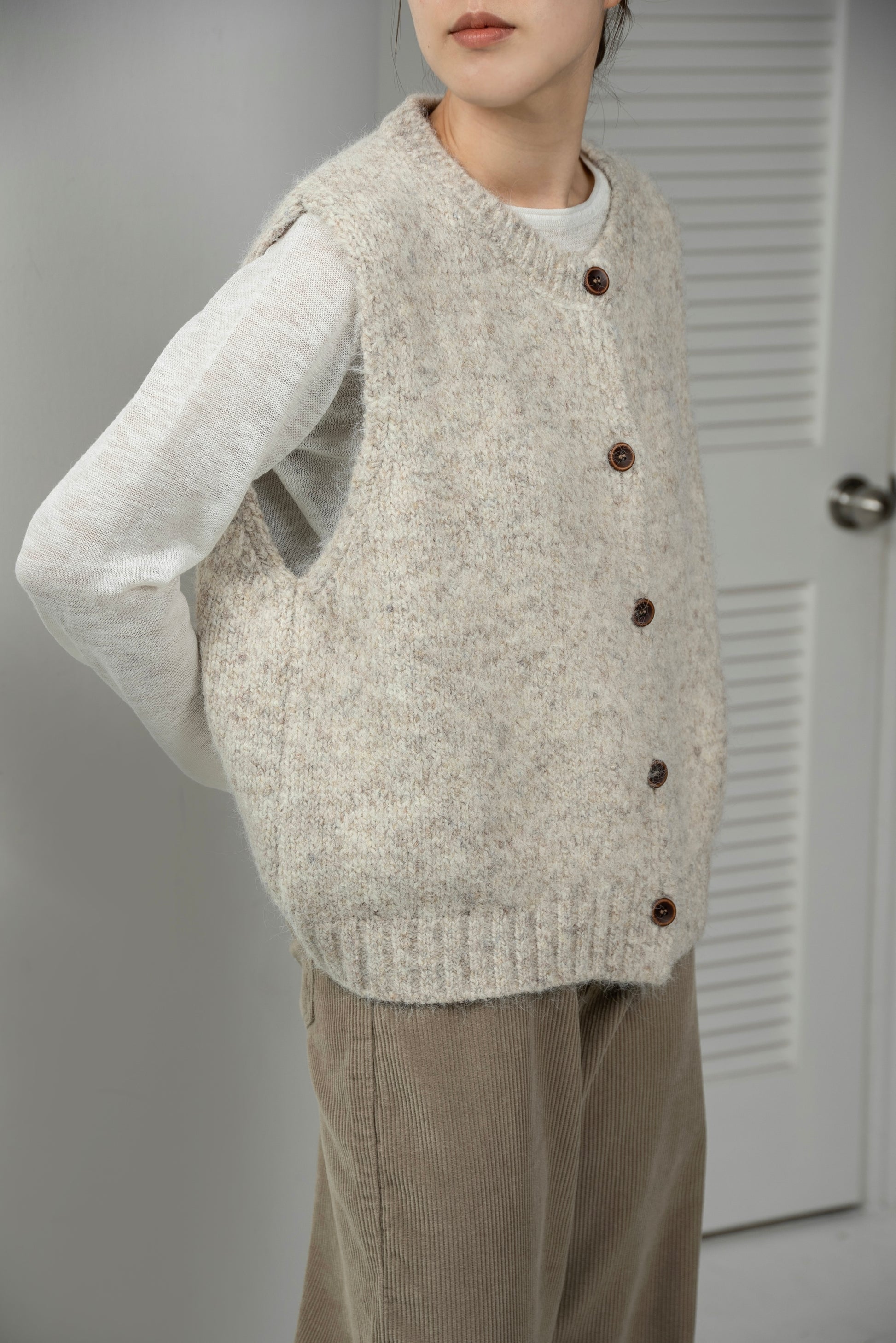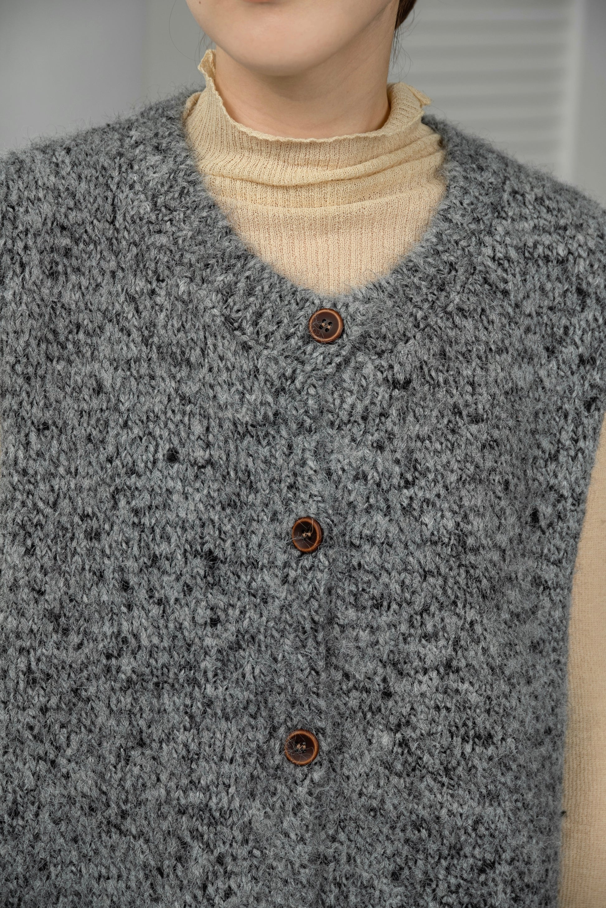 fluffy mix wood like button knit vest
