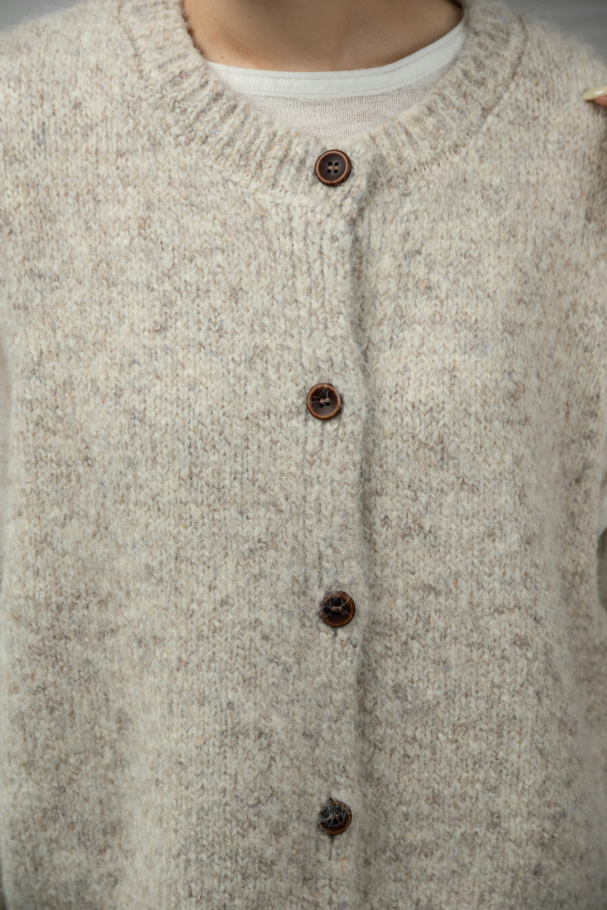 商品名:フラッフィーミックスウッドライクボタンニットベスト