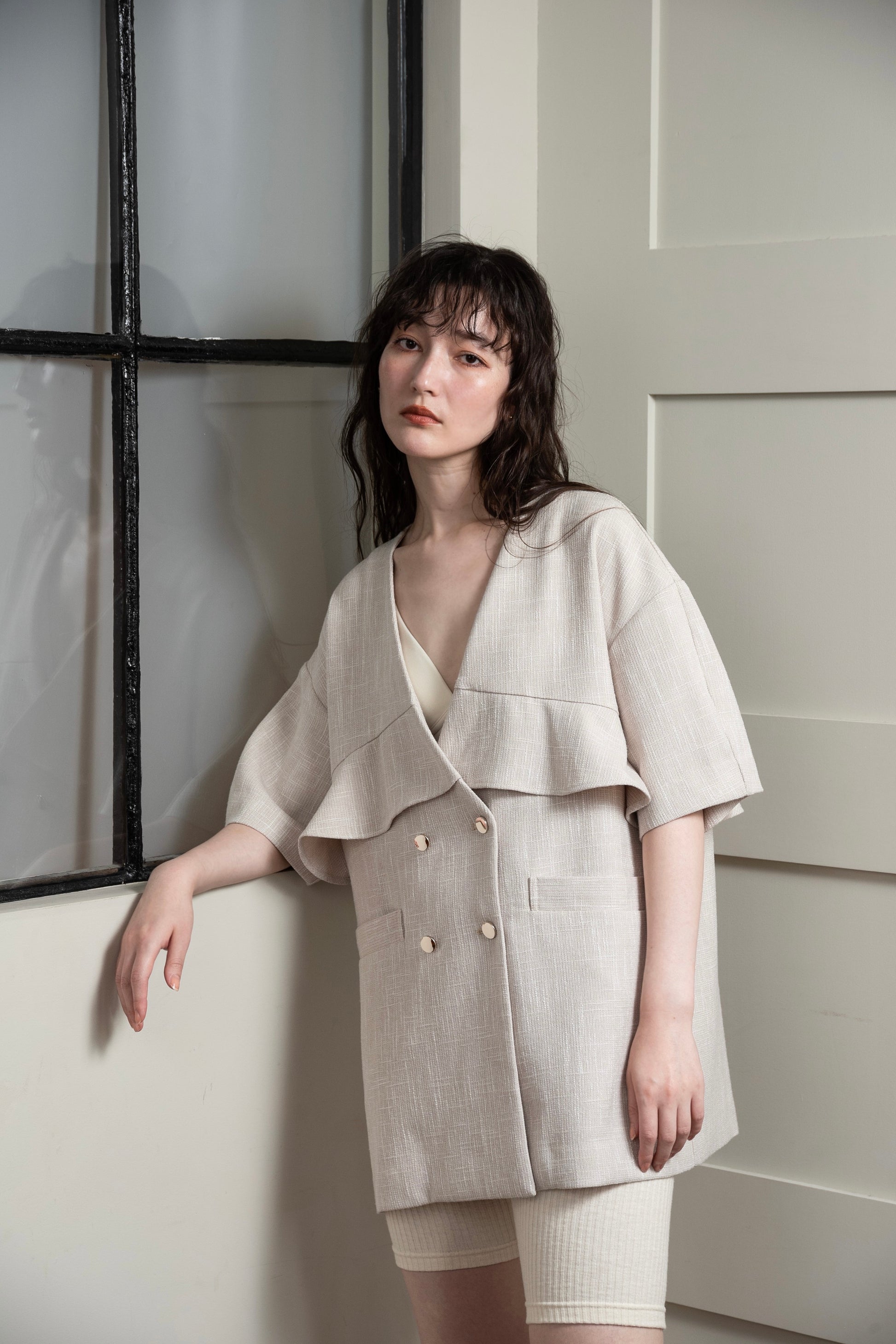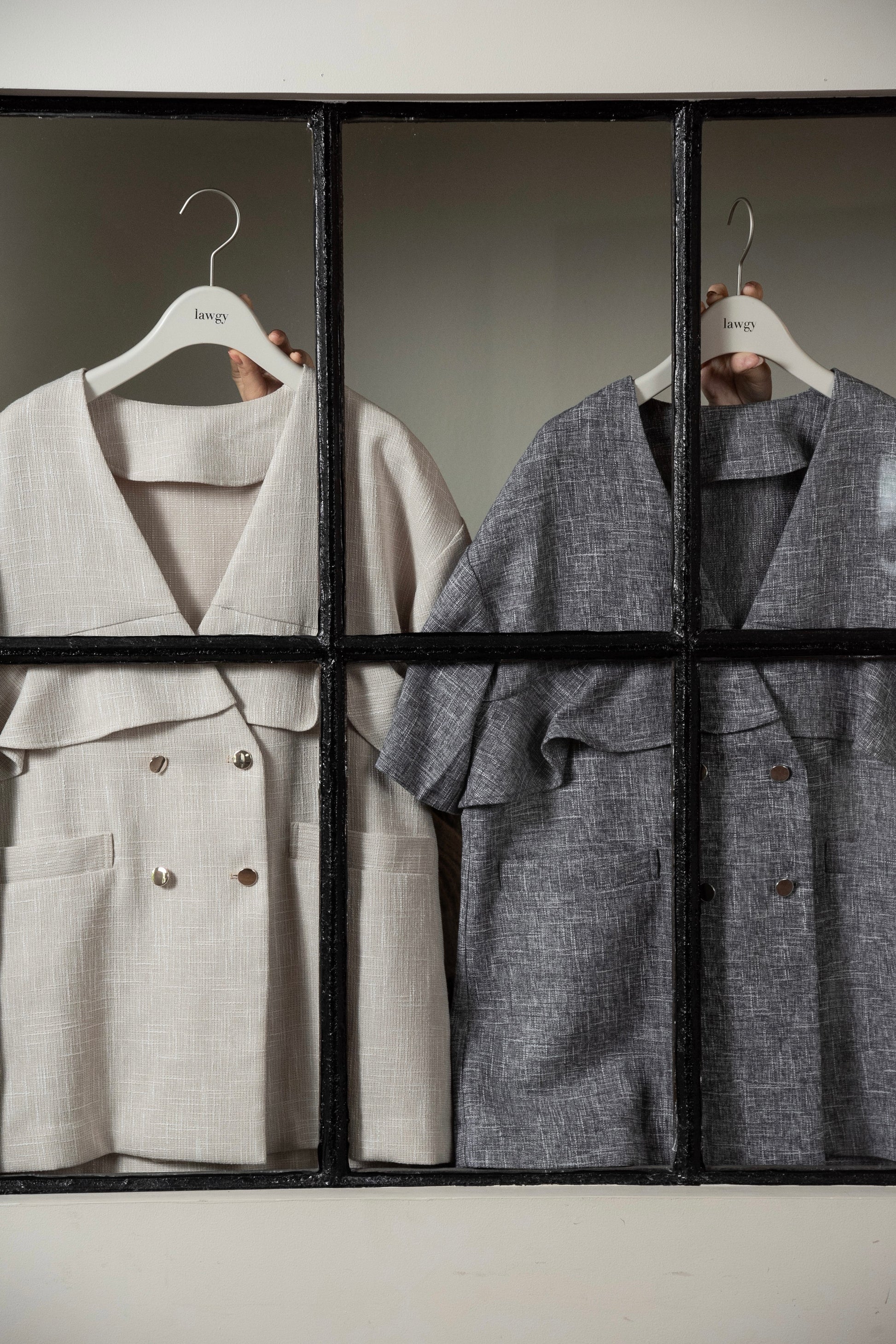 ・カラーにより異なるシルバー、ゴールドカラーのダブルボタンがアクセント