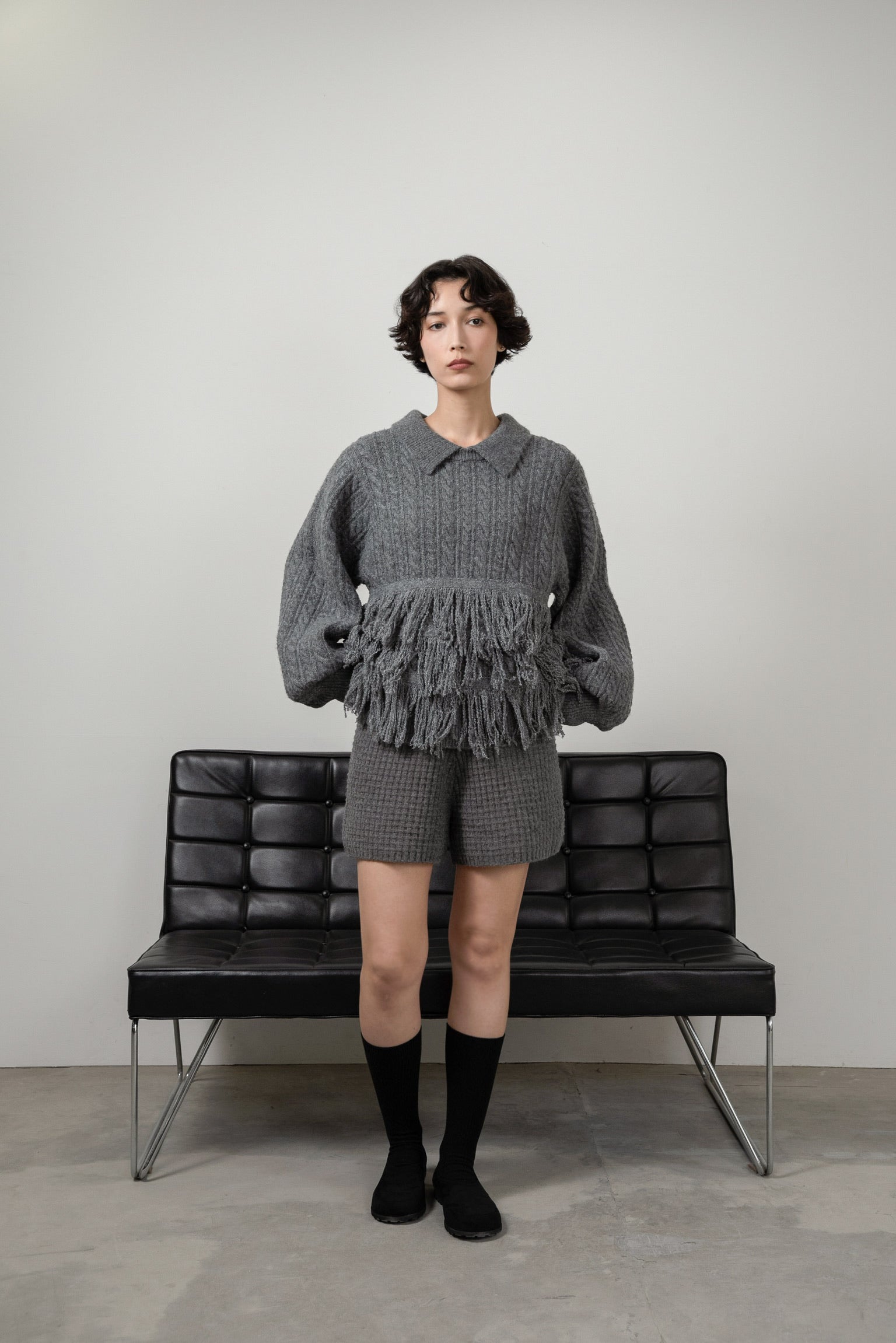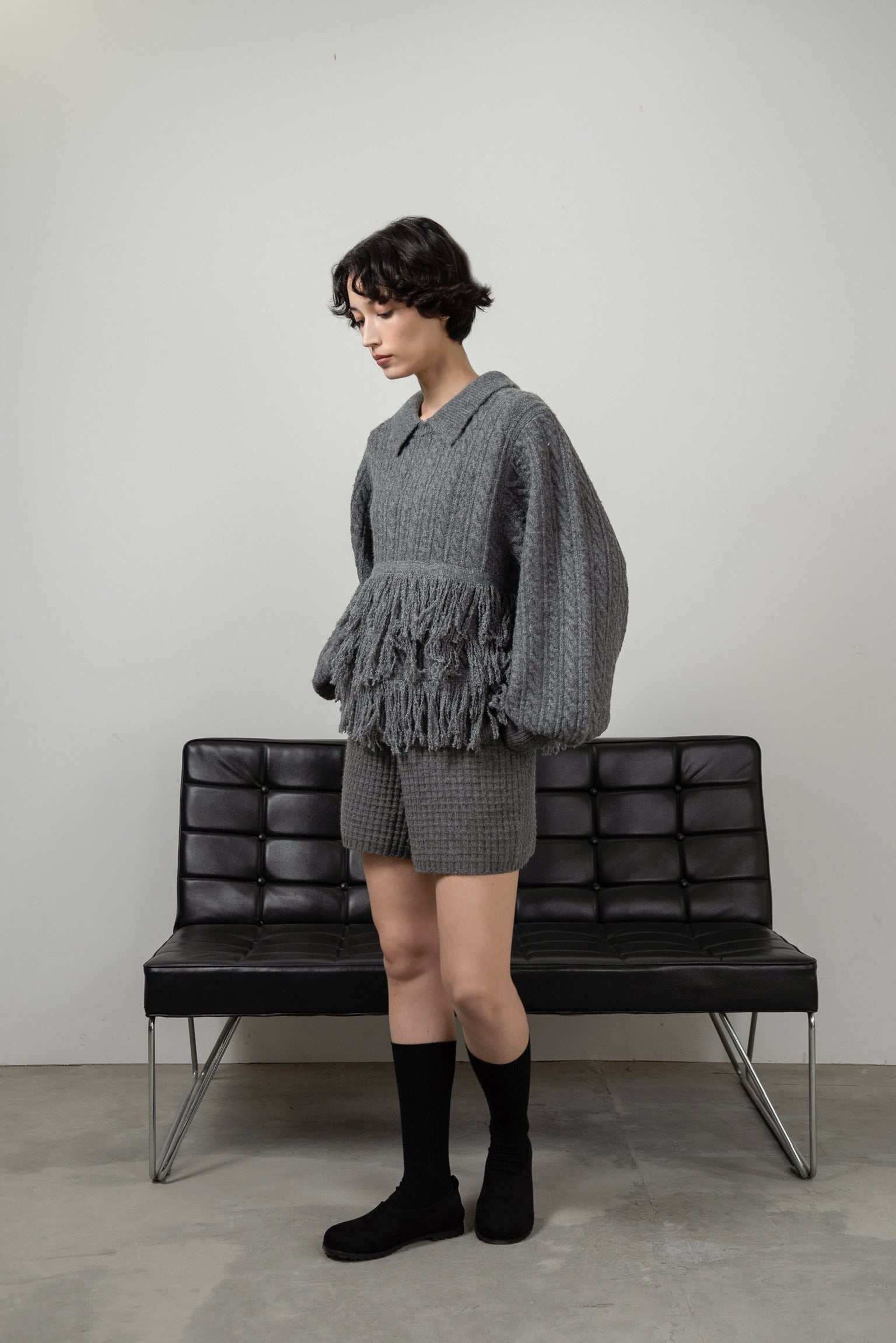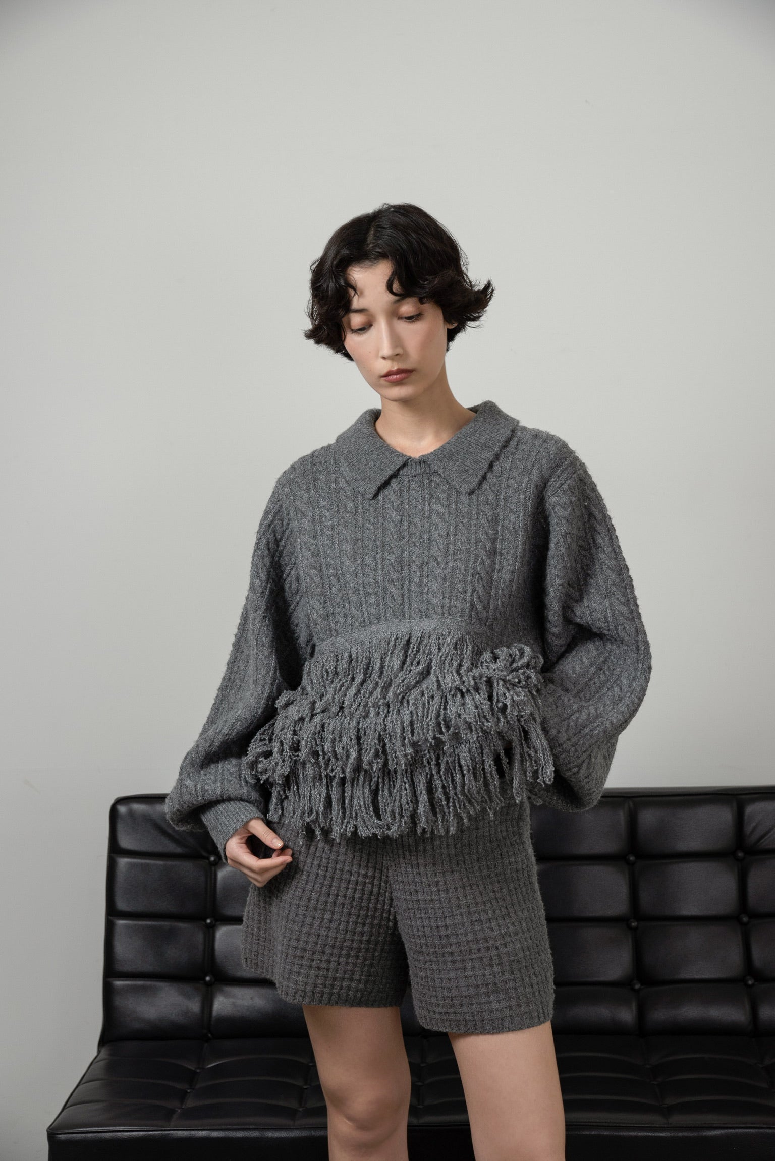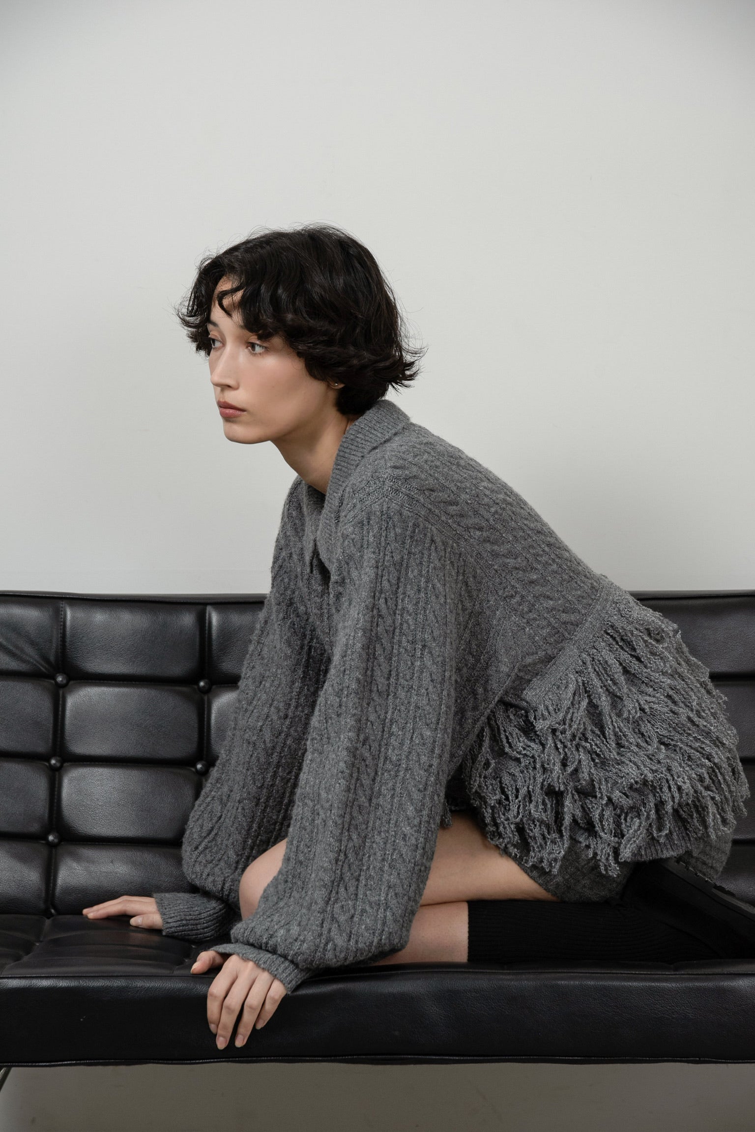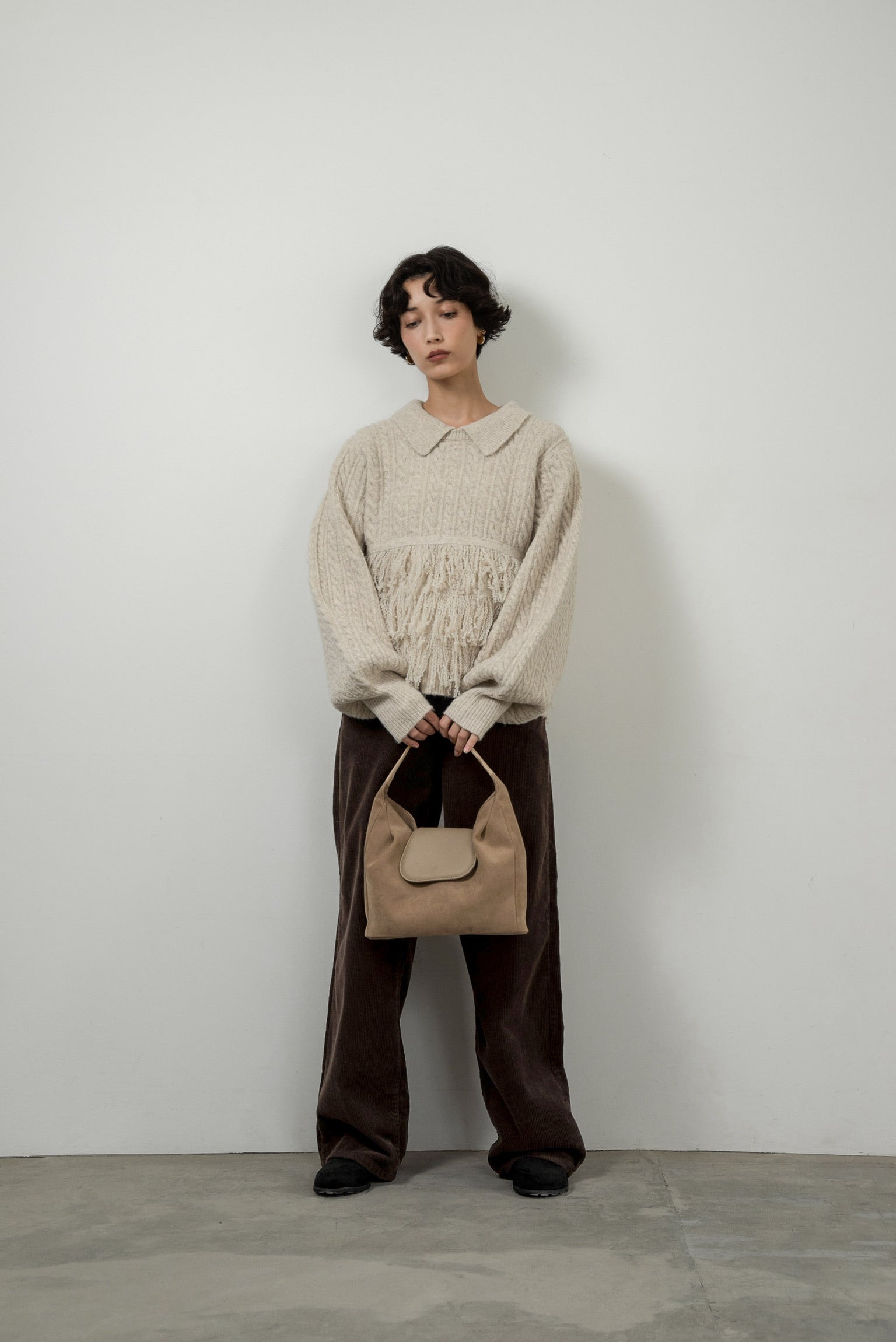 ・細かなケーブル柄がカジュアルすぎず、合わせやすい