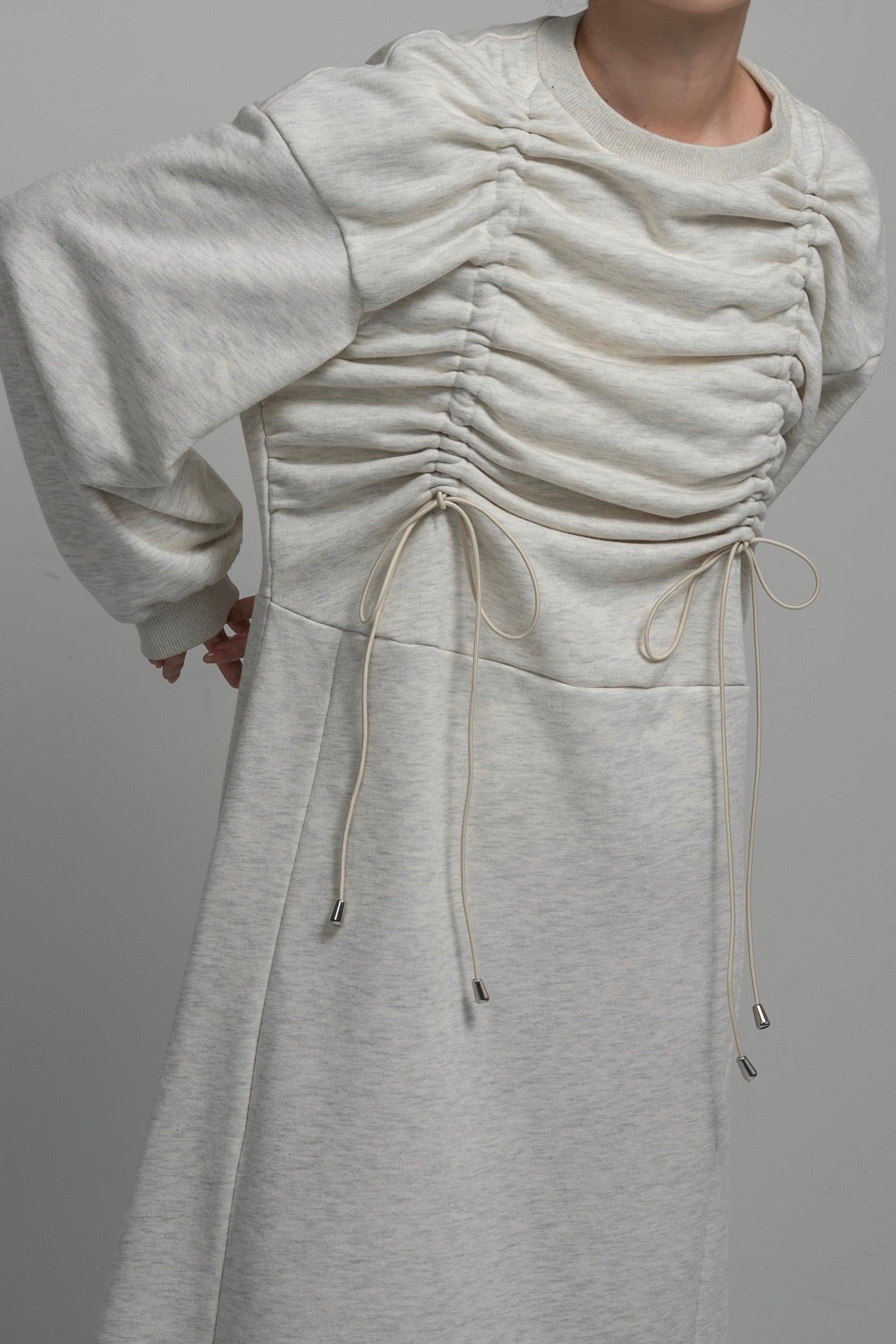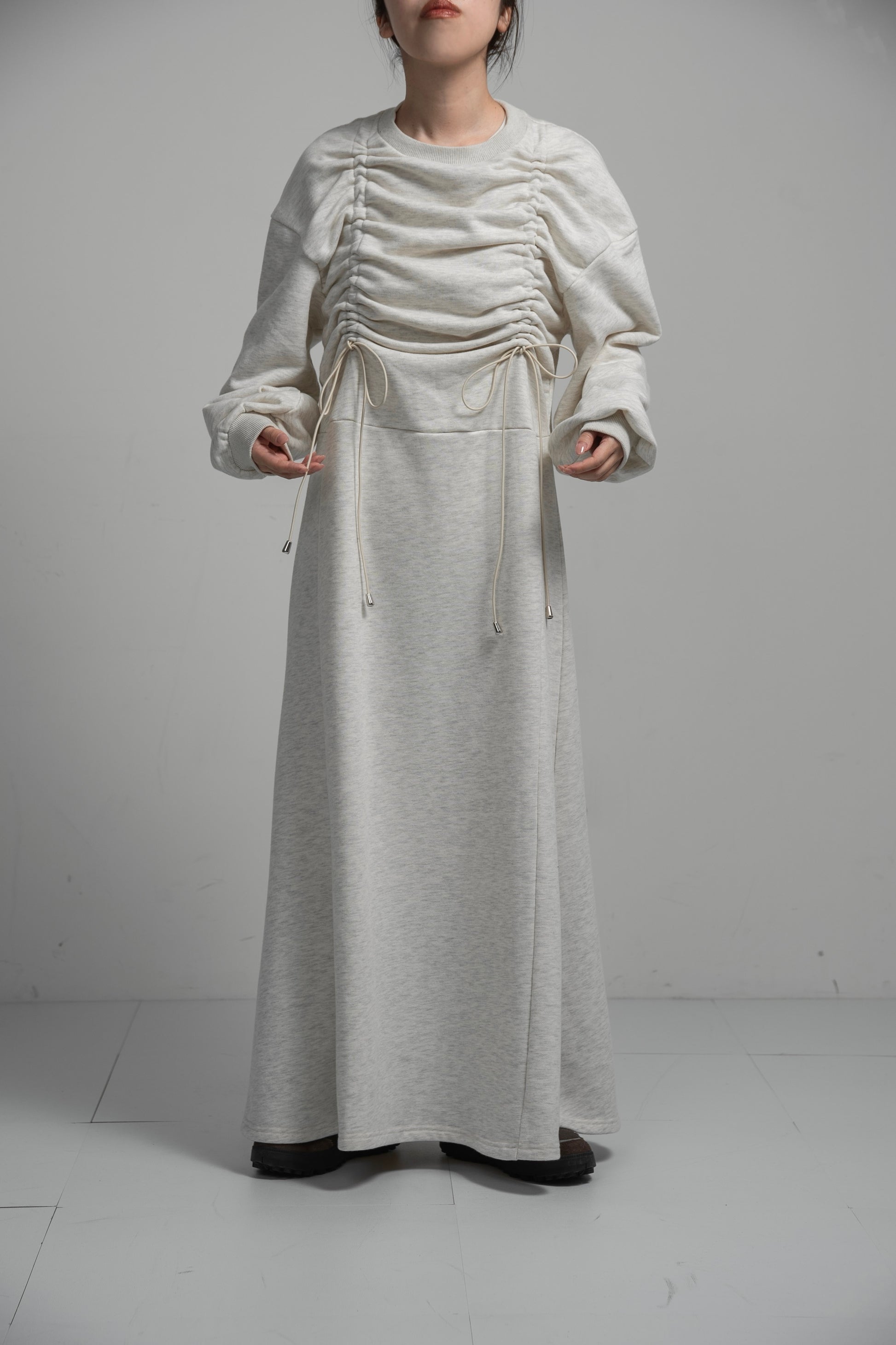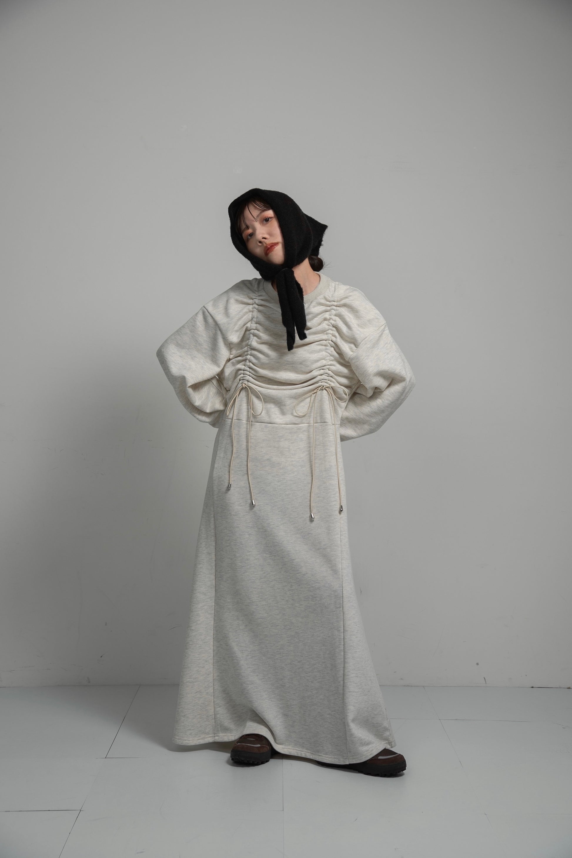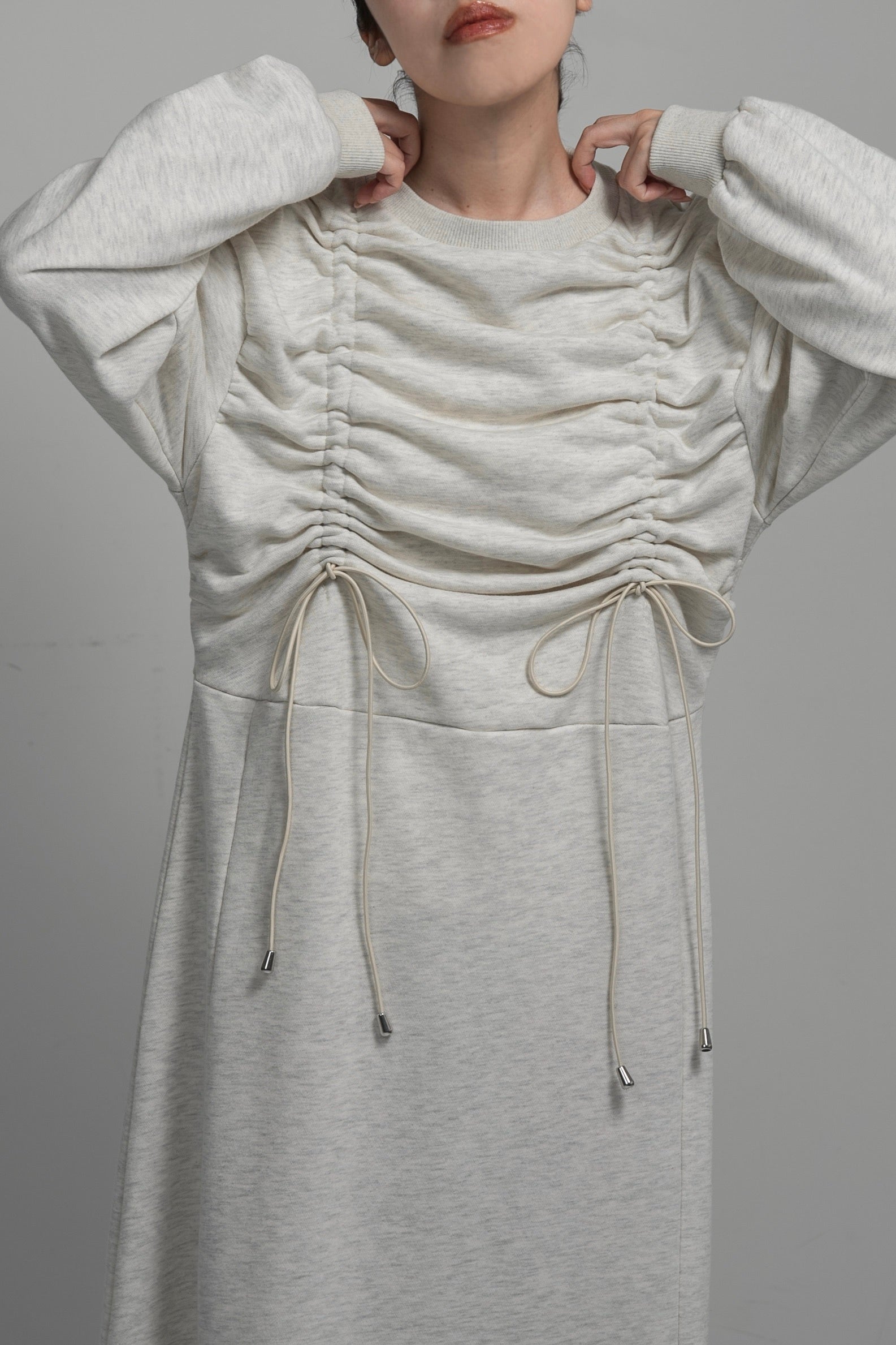 ・フロントのギャザーは紐を引っ張ることで、ギャザーの分量/ウエストの位置を変えてお召しいただけます