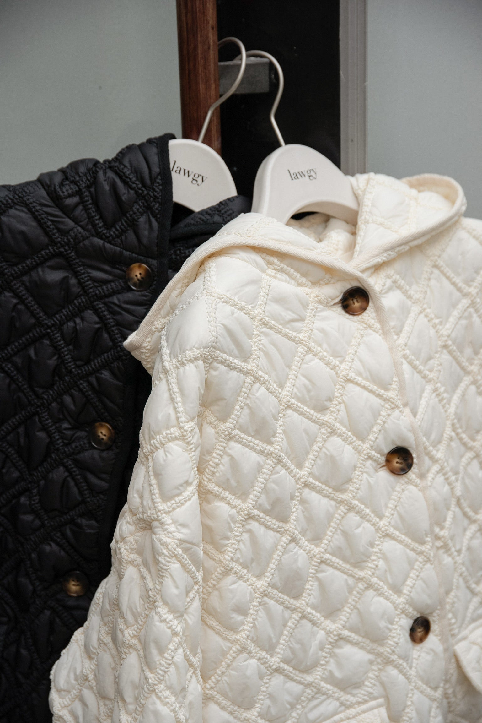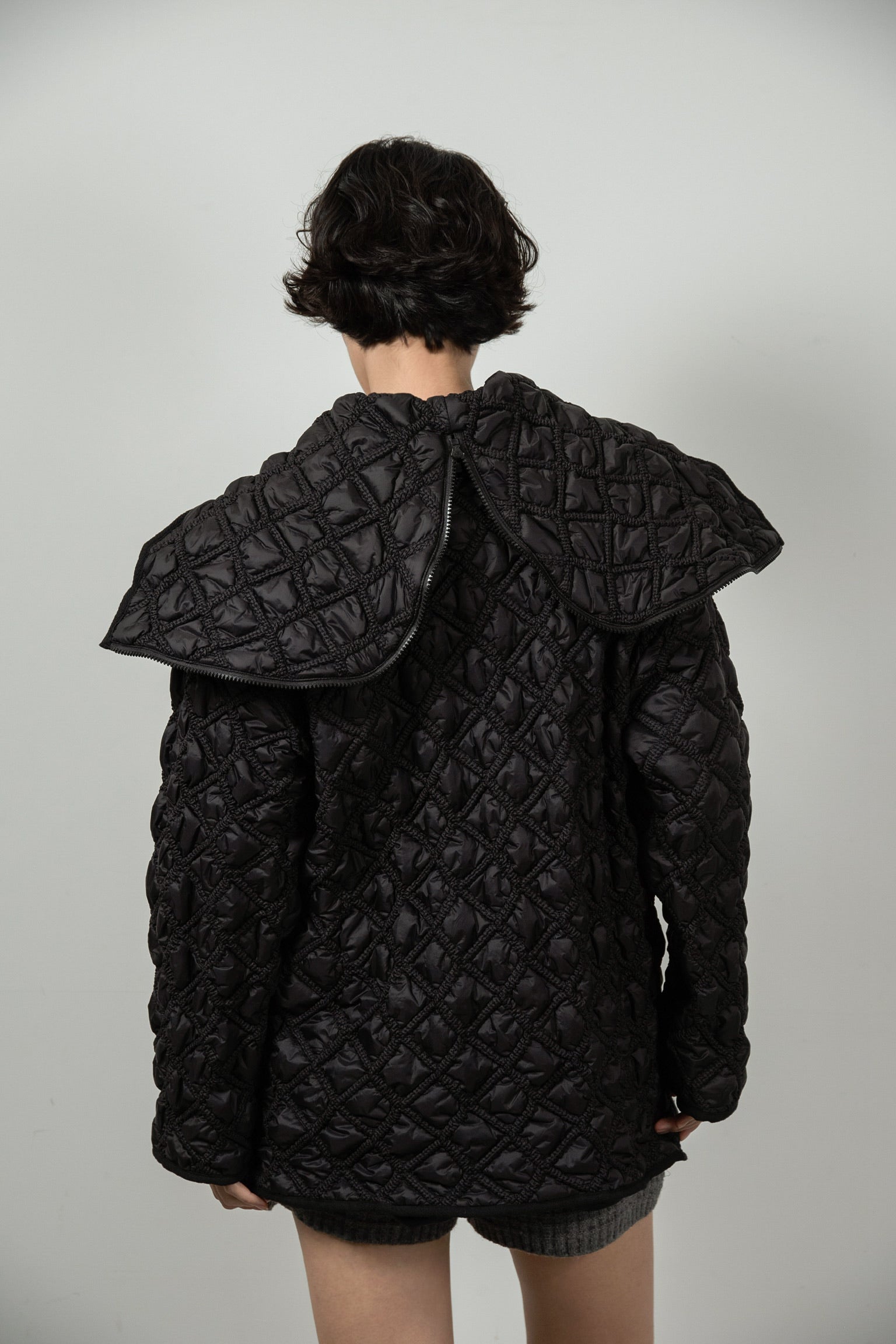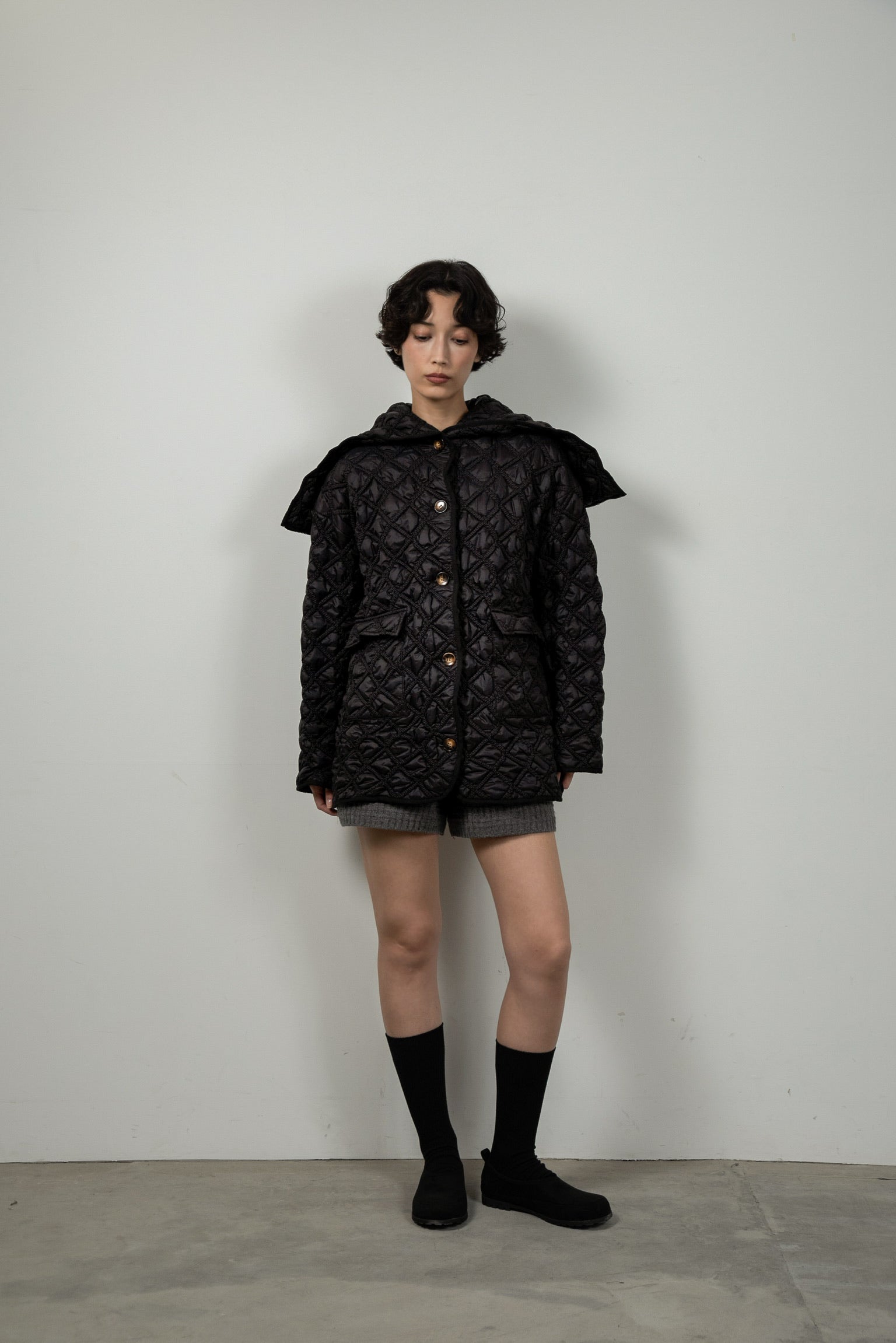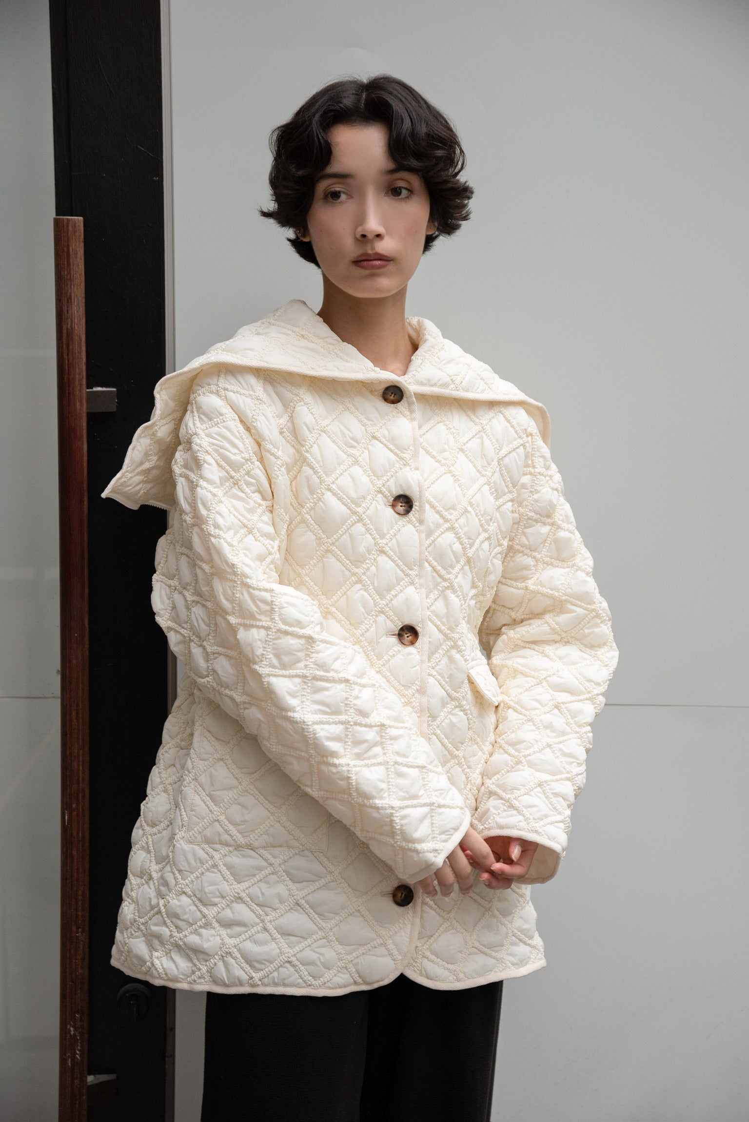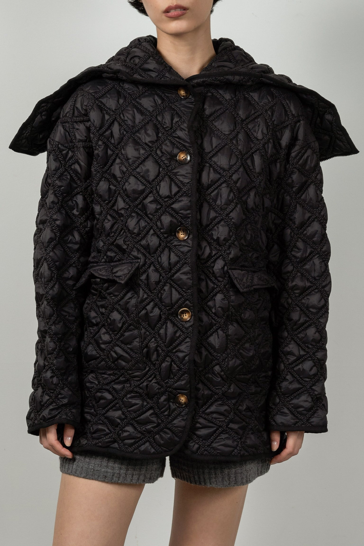 hooded quilted stitch point coat