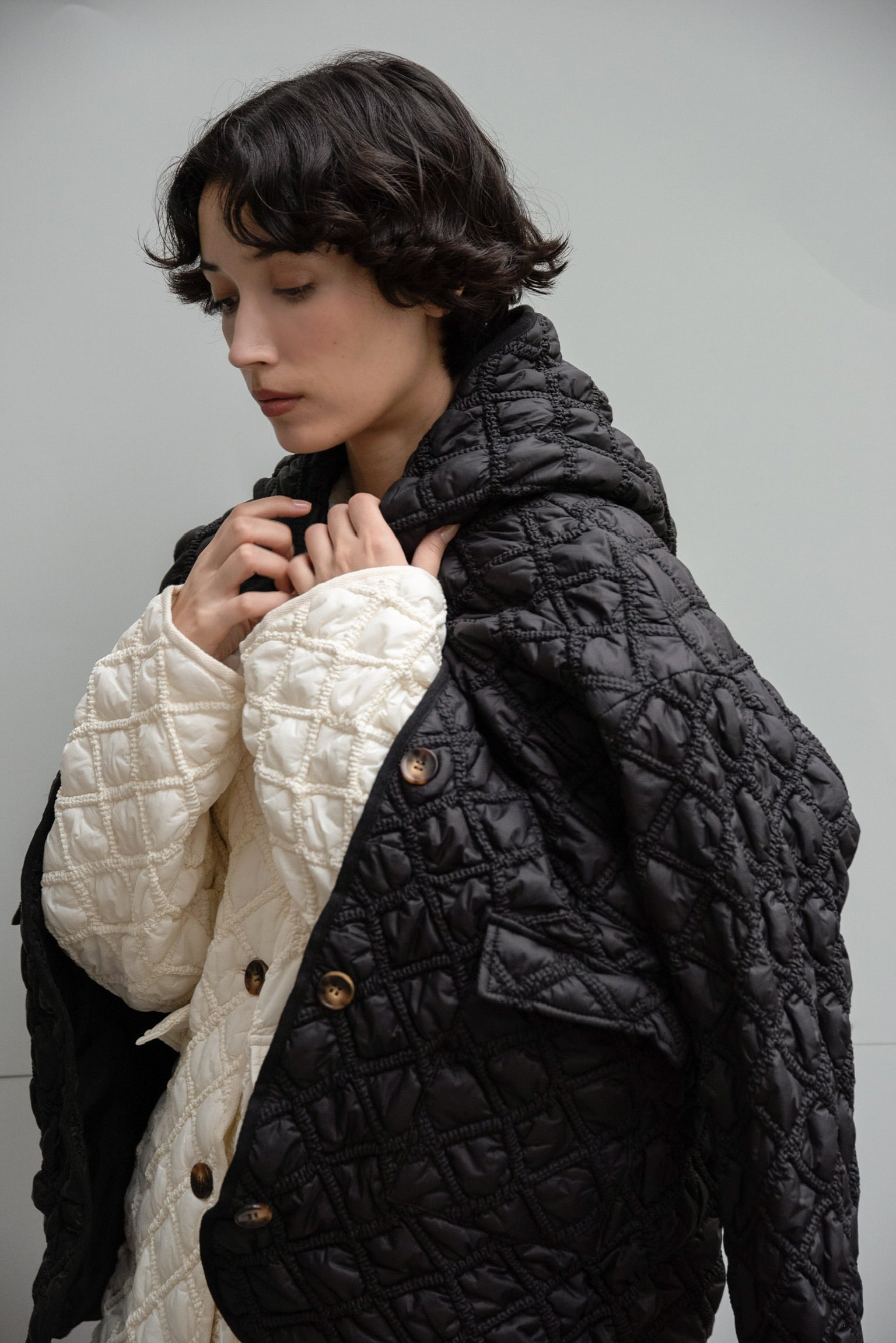 商品名:フーデッドキルテッドステッチポイントコート