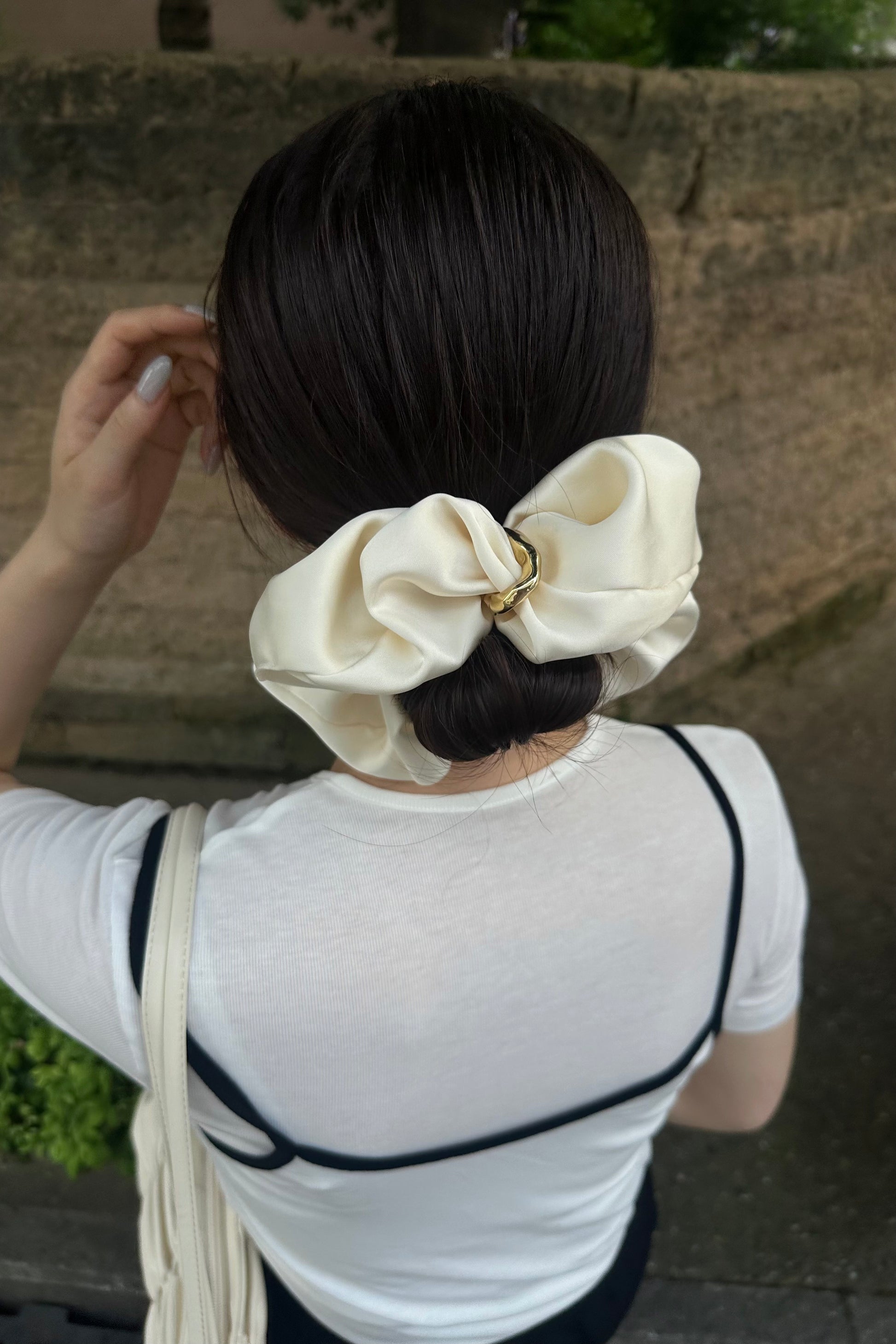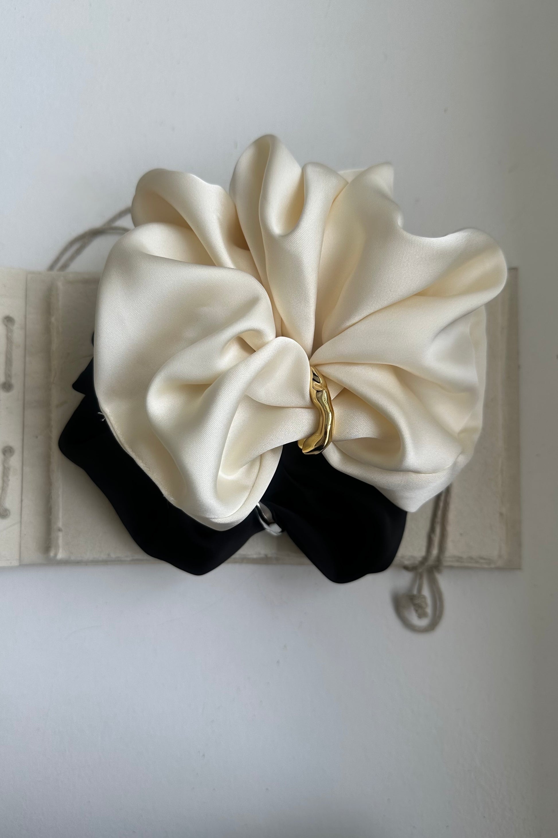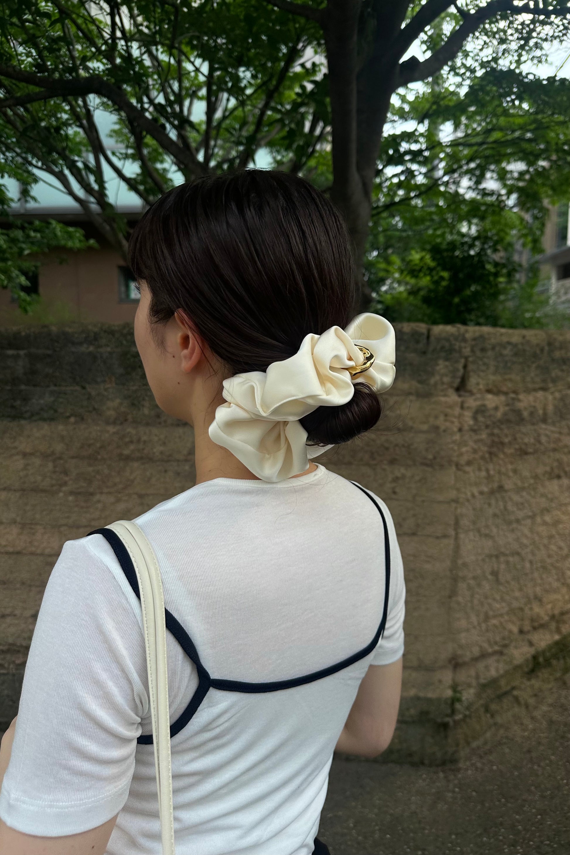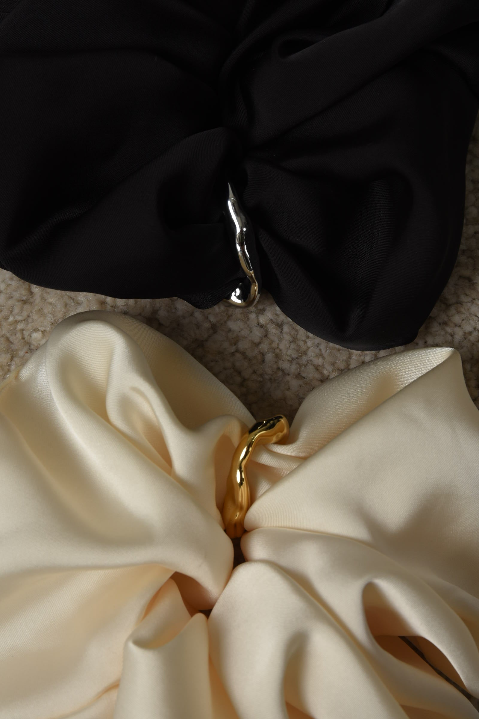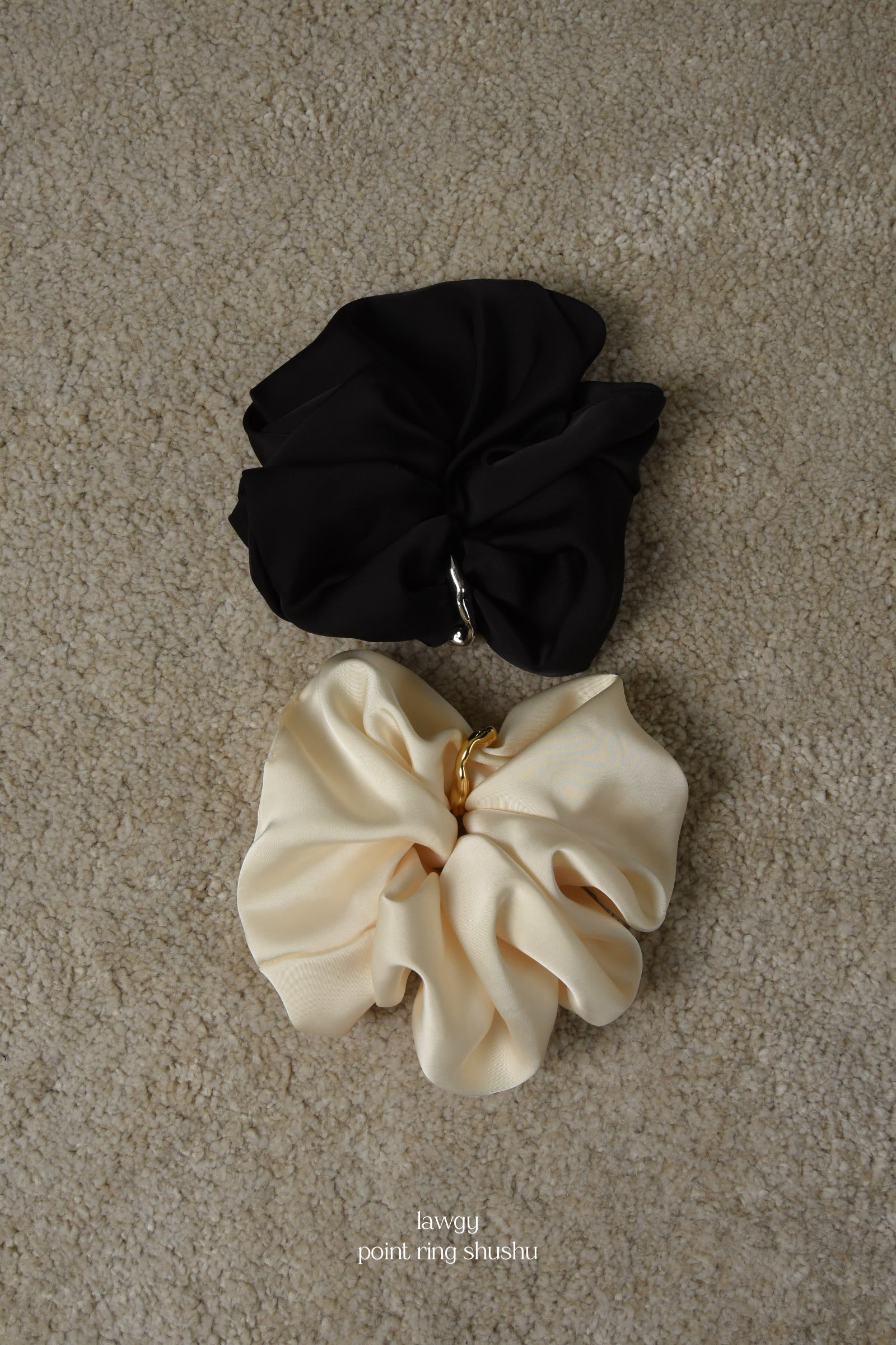 ・カラーによりゴールドとシルバーのモチーフがアクセントのシュシュ