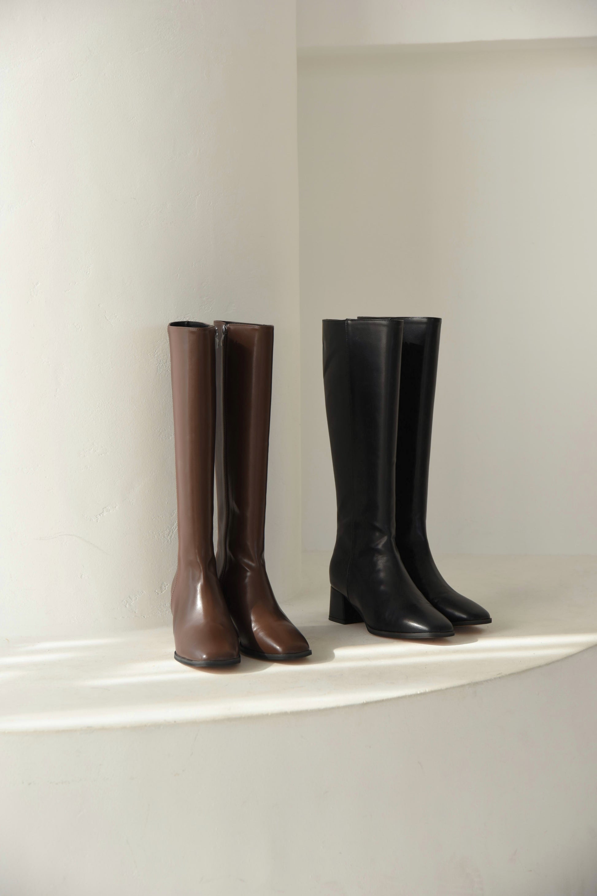 ・トレンド感のあるスクエアトゥが足元にニュアンスをプラスしこなれ感を演出してくれるロングブーツ