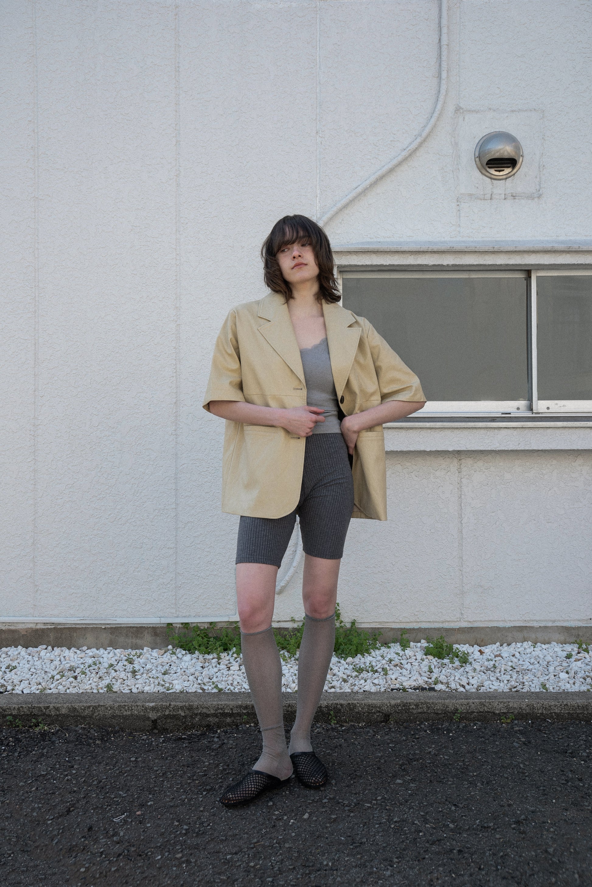 ・程よく身体にフィットするリブ素材で、すっきりとしたシルエットを演出