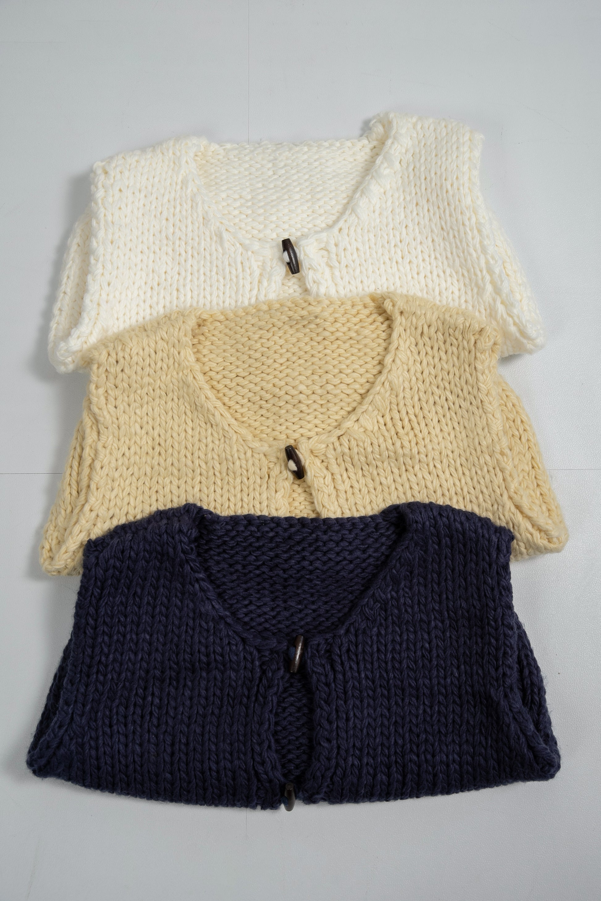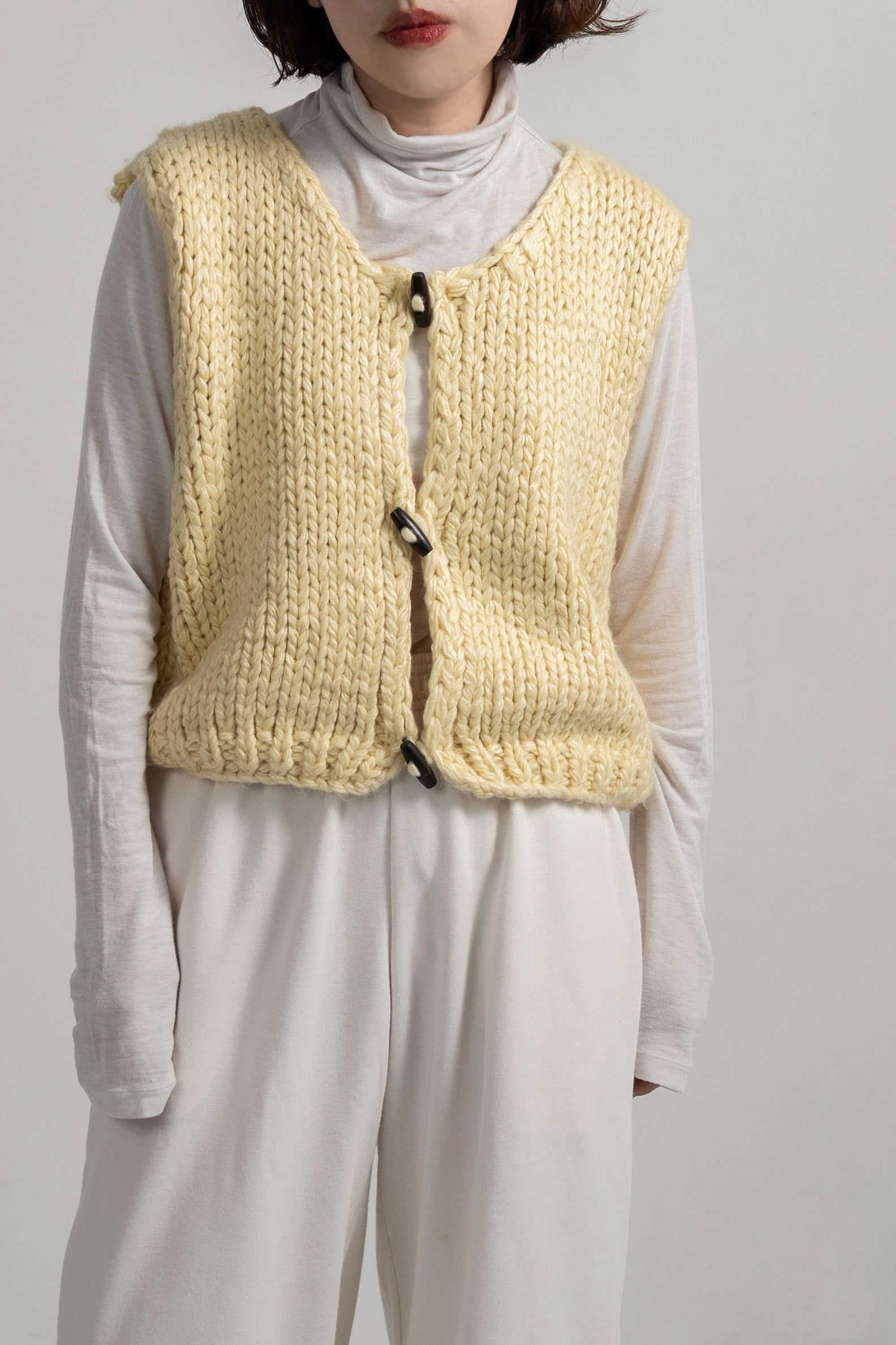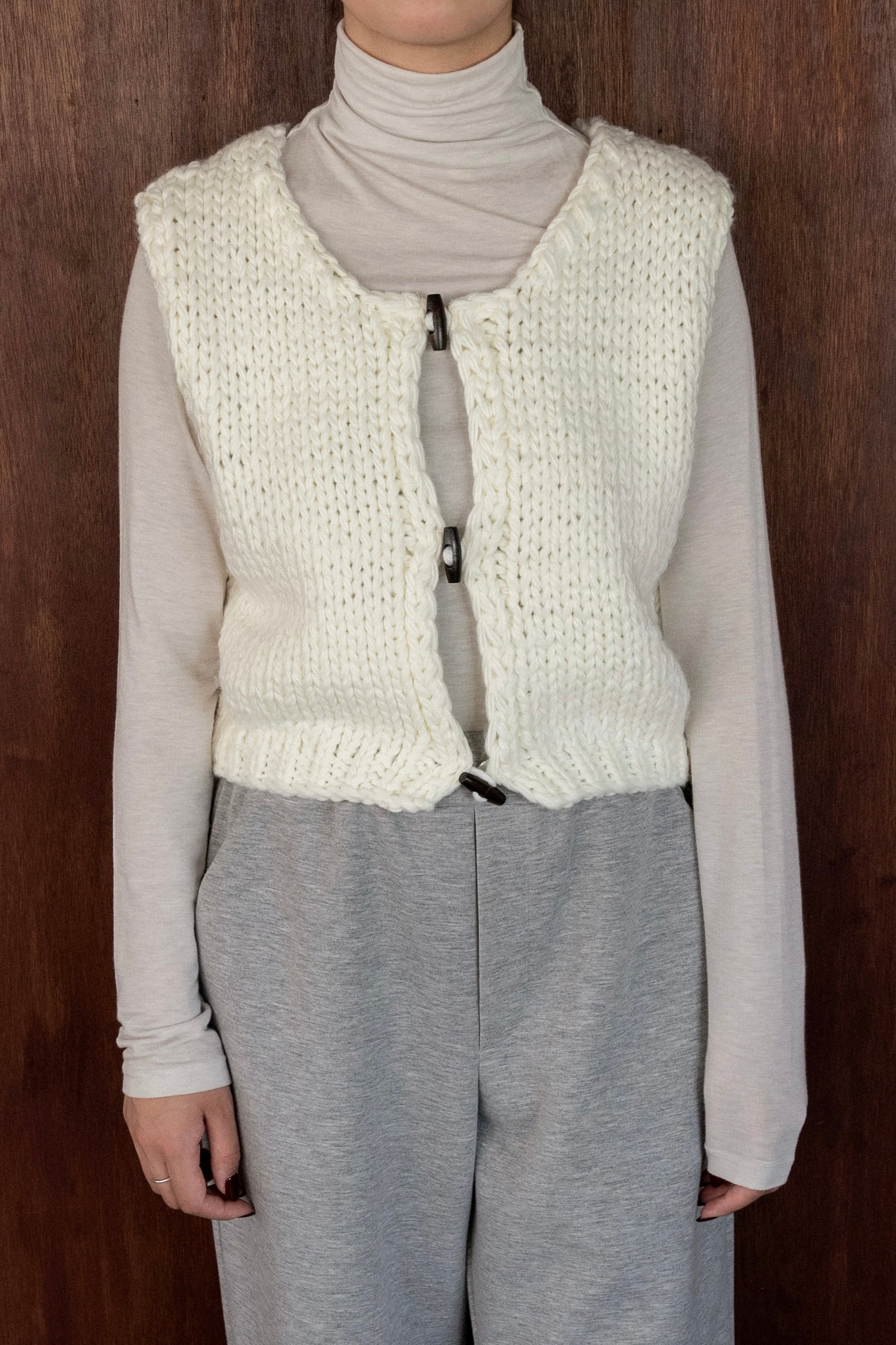 wood button chunky knit vest